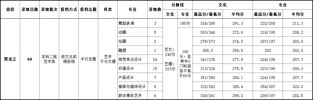 2018年 黑龙江艺术类录取情况