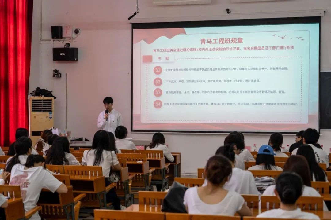 开班仪式上,学院分团委书记史晓菲对干部们提出希望:希望同学们通过参加青马工程培训班,更好地理解和把握党的基本路线、方针和政策,提高政治觉悟,全面提升综合能力。