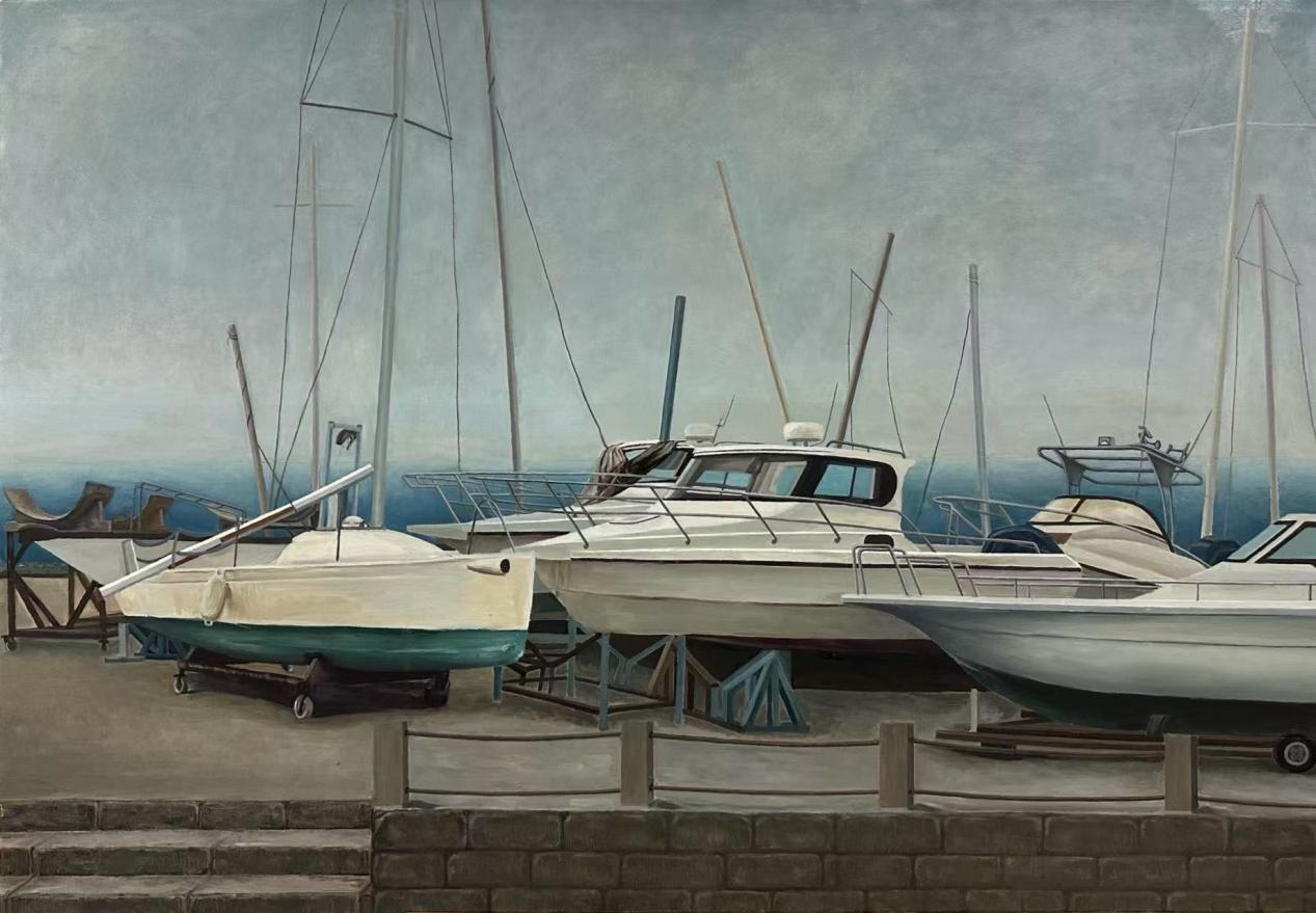 吴瑜《岸上的游艇》100cm* 140cm 布面油画