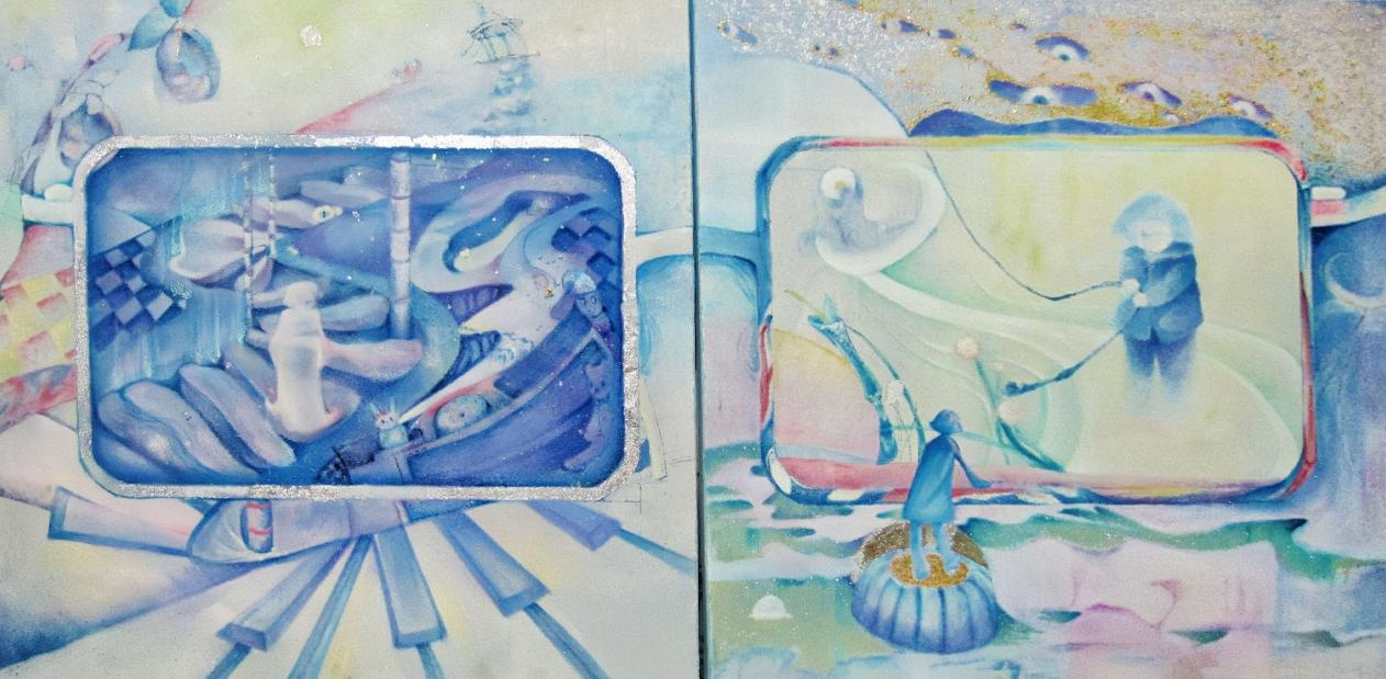 袁梦悦《追月》100cm*100cm*2 布面综合材料