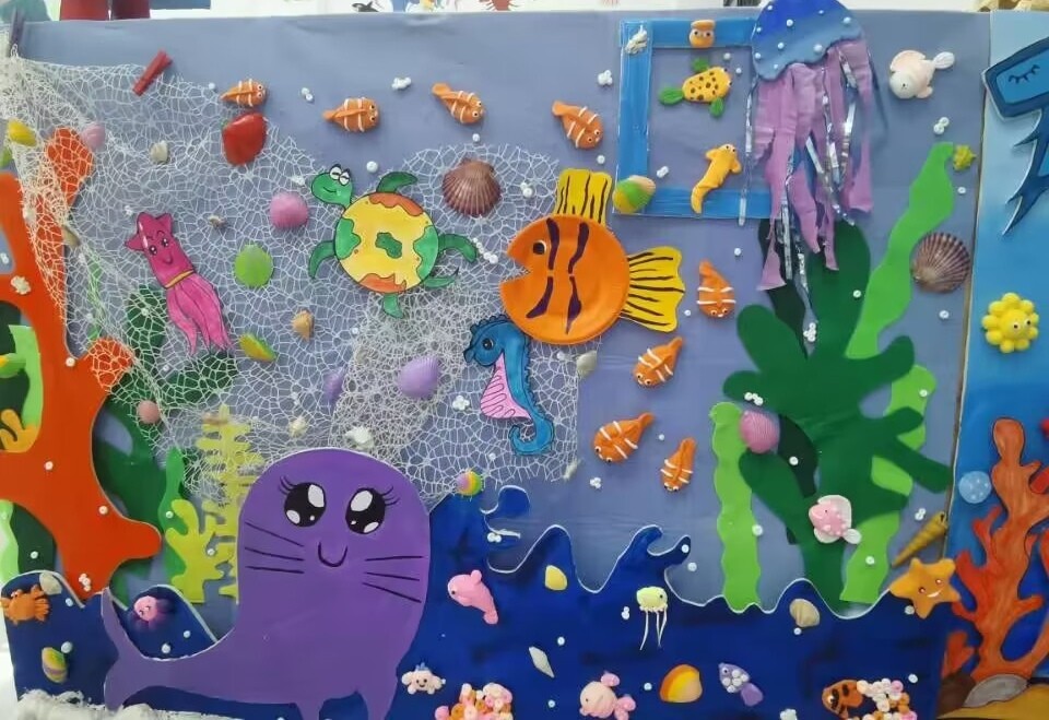 人文教育学院坚持学生发展为中心,以OBE理念为指导,产学研用一体化教学改革,加强校企共建课程,培养学生综合实践能力和创新能力。2023年3月18日,人文教育学院学前教育教研室举办2020级学前教育专业幼儿园教育环境创设课程结课汇报展。本次结课汇报展的作品以海洋文化为主题开展区域环境创设。环境创设是幼儿园课程实施的重要内容,也是幼儿园工作的基本要务,以美术为手段展示的学生环创作品,从多方面体现学生的综合素质。