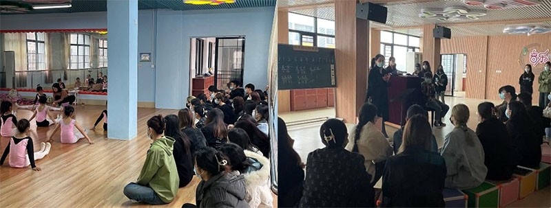 最后学生进入学校,对校内设施,课堂活动,学生作品进行了多维度的观察学习,期间指导老师对学生进行思想指导,激发学生的自主思考。(舞蹈教研室/摄)
