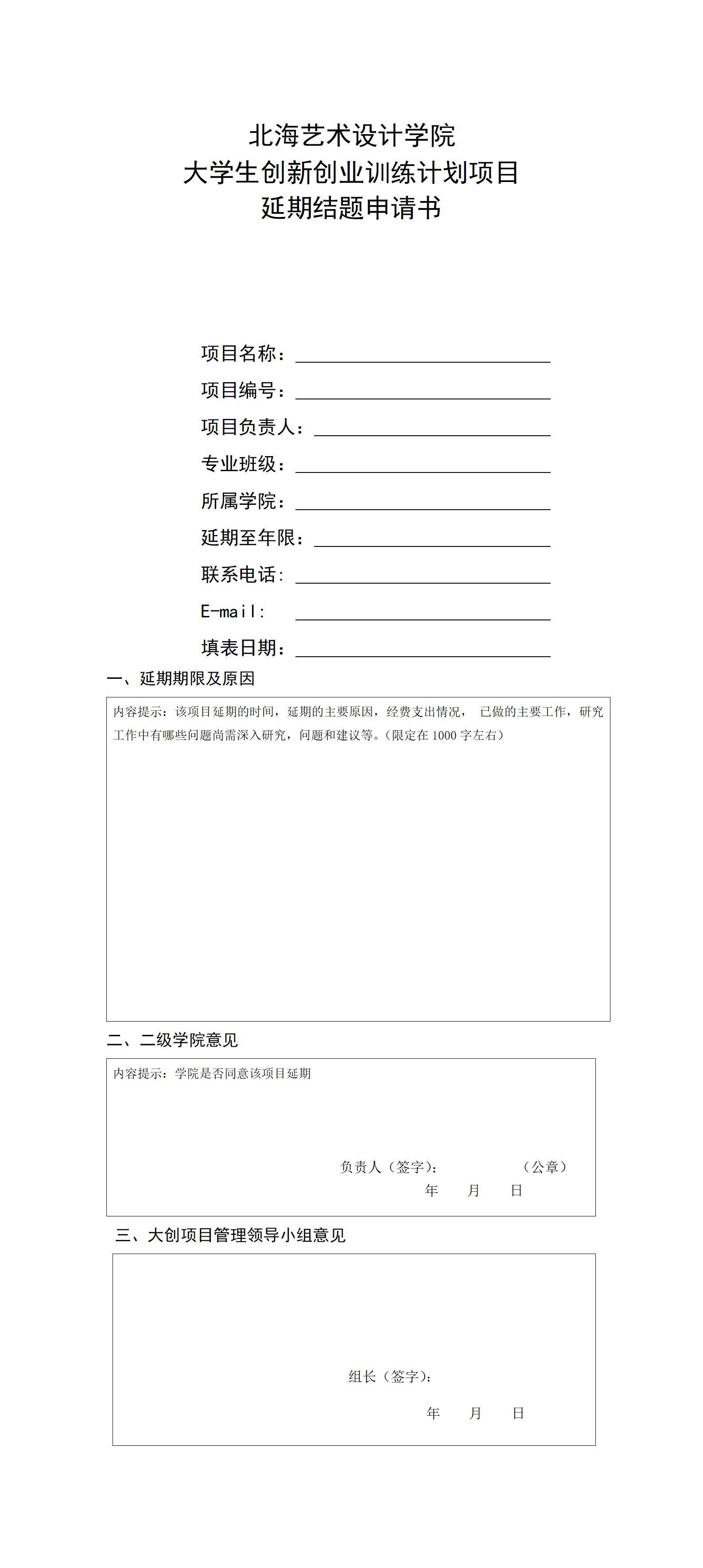 大创延期结题申报书