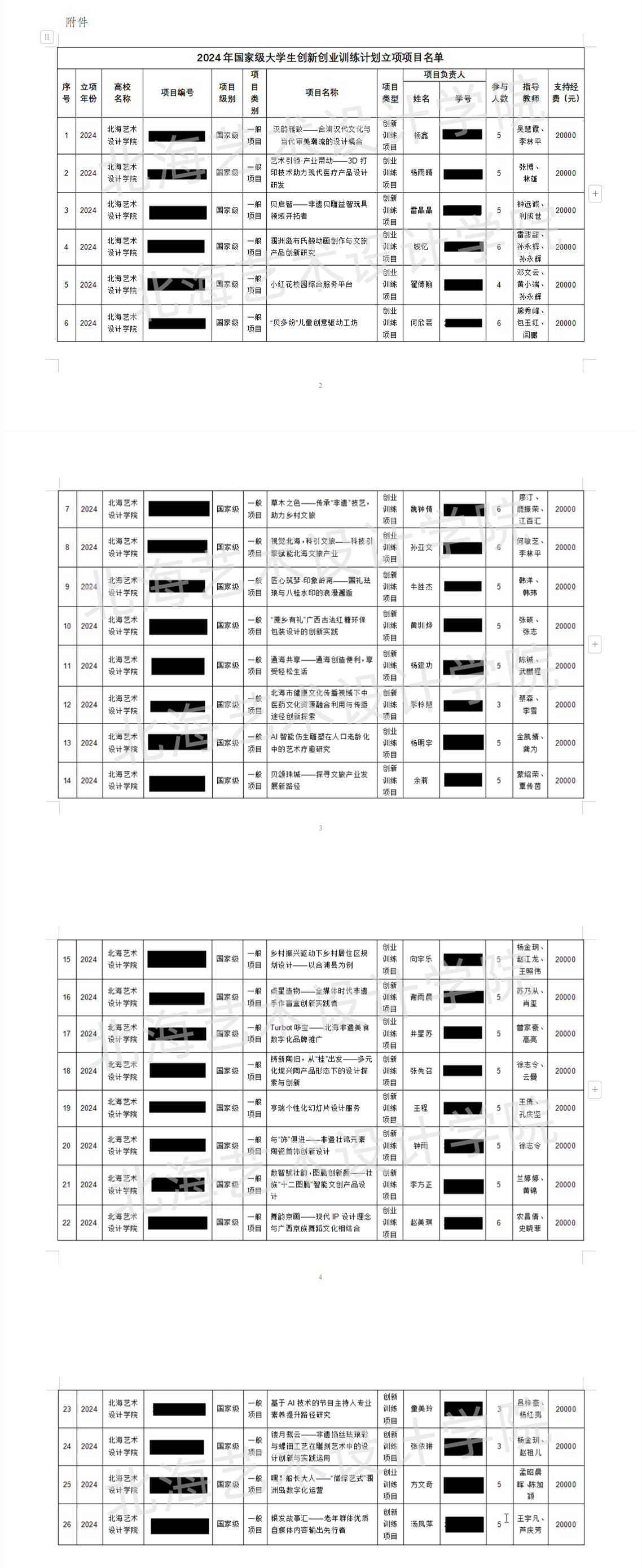 附件:2024年国家级大学生创新创业训练计划立项项目名单