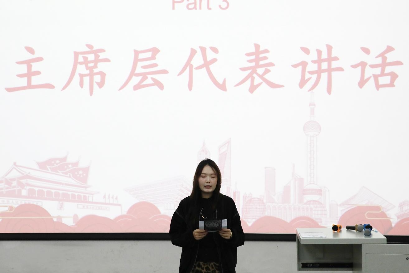会议的第一项进程由建筑与环境艺术学院学生第二党支部书记、分团委副书记陈宣辰老师发言,她重点强调了提高政治觉悟以及保持初心的重要性。鼓励同学们主动培养独立解决问题的能力,积极参与各类活动、主动交流学习,在探索中发掘兴趣潜能,一步步向理想靠近。同时,倡导大家“工作上追求卓越,做人上保持谦逊”,在彰显学院特色的同时,以团结协作之力实现共同进步。