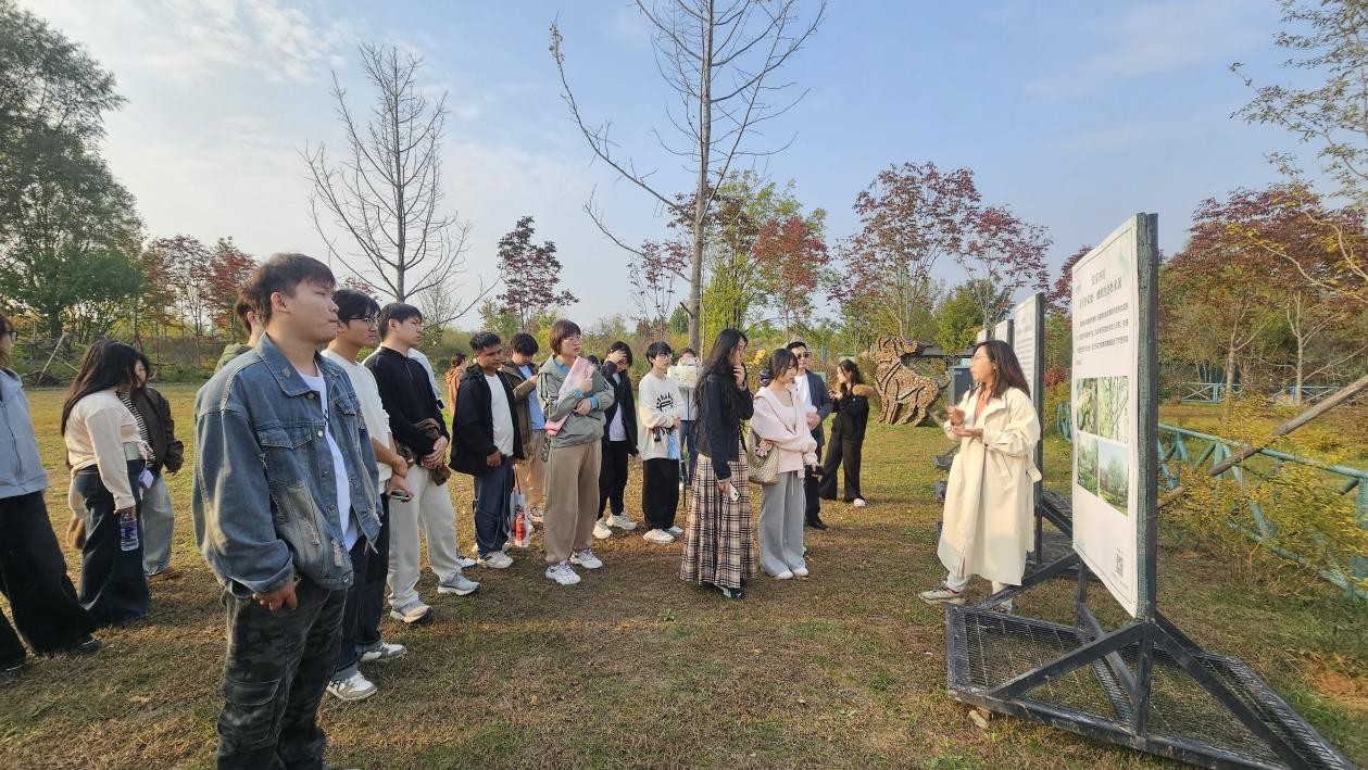 随后,实践教学团队带领学生走进北京六环内最大“绿肺”—— 温榆河公园,将教学重点转向“大型生态景观园林”的认知与学习。