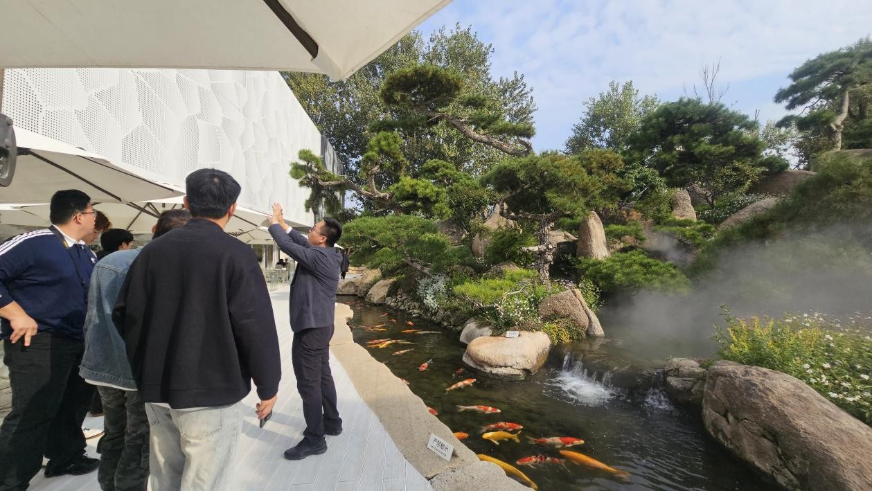 现场教师重点拆解艺术馆东方园林景观群的设计巧思:从松石布局的层次感、水雾系统的氛围营造,到锦鲤与水体的生态互动,系统解析自然元素的组合逻辑;同时对比黑天鹅蛋糕店区域的功能划分与摄影展区的设计差异,从空间规划、材料选择、生态美学表达等维度,深入探讨“沉浸式景观”的构建思路。