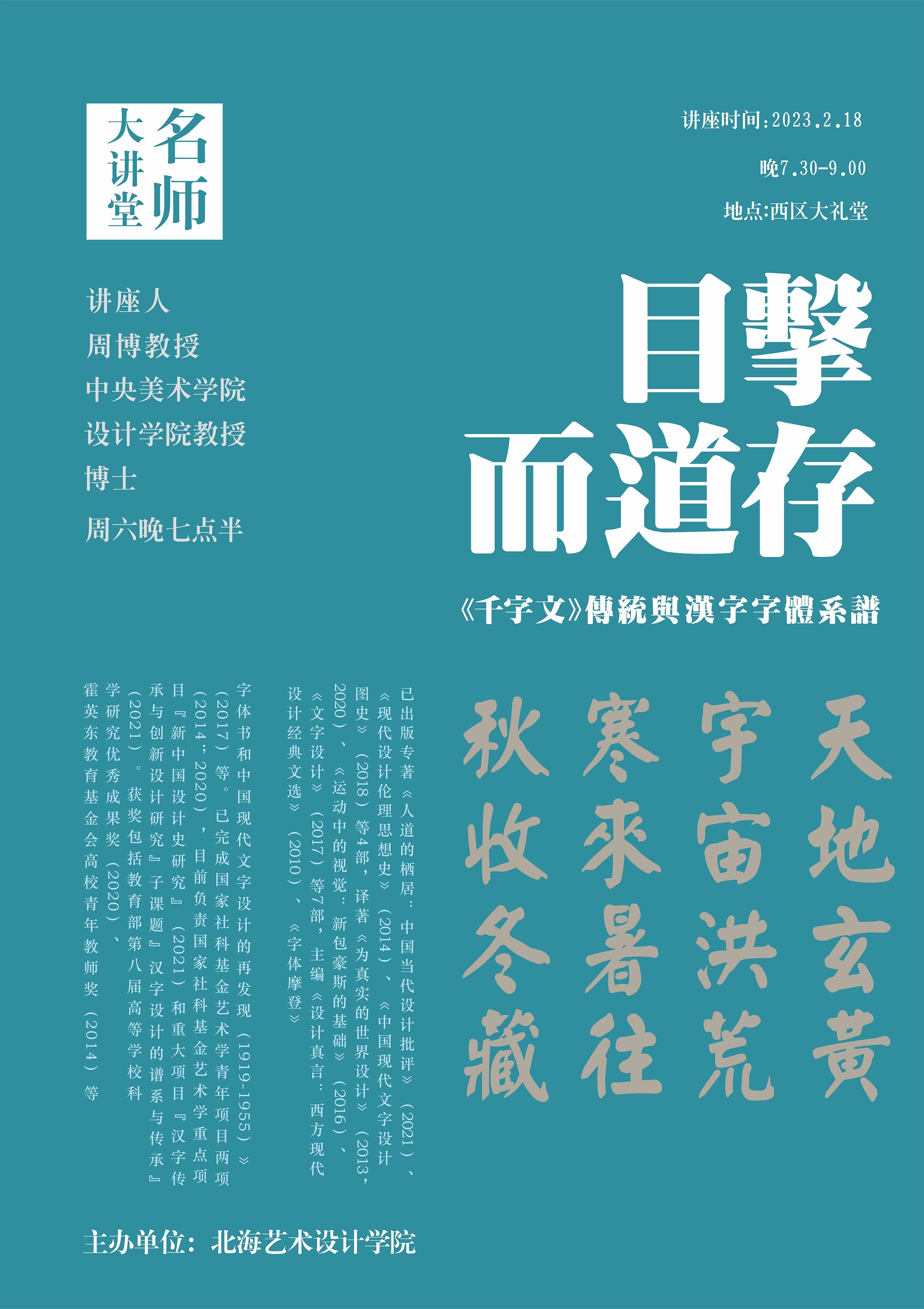讲座预告|周博《目击而道存:〈千字文〉传统与汉字字体系谱》