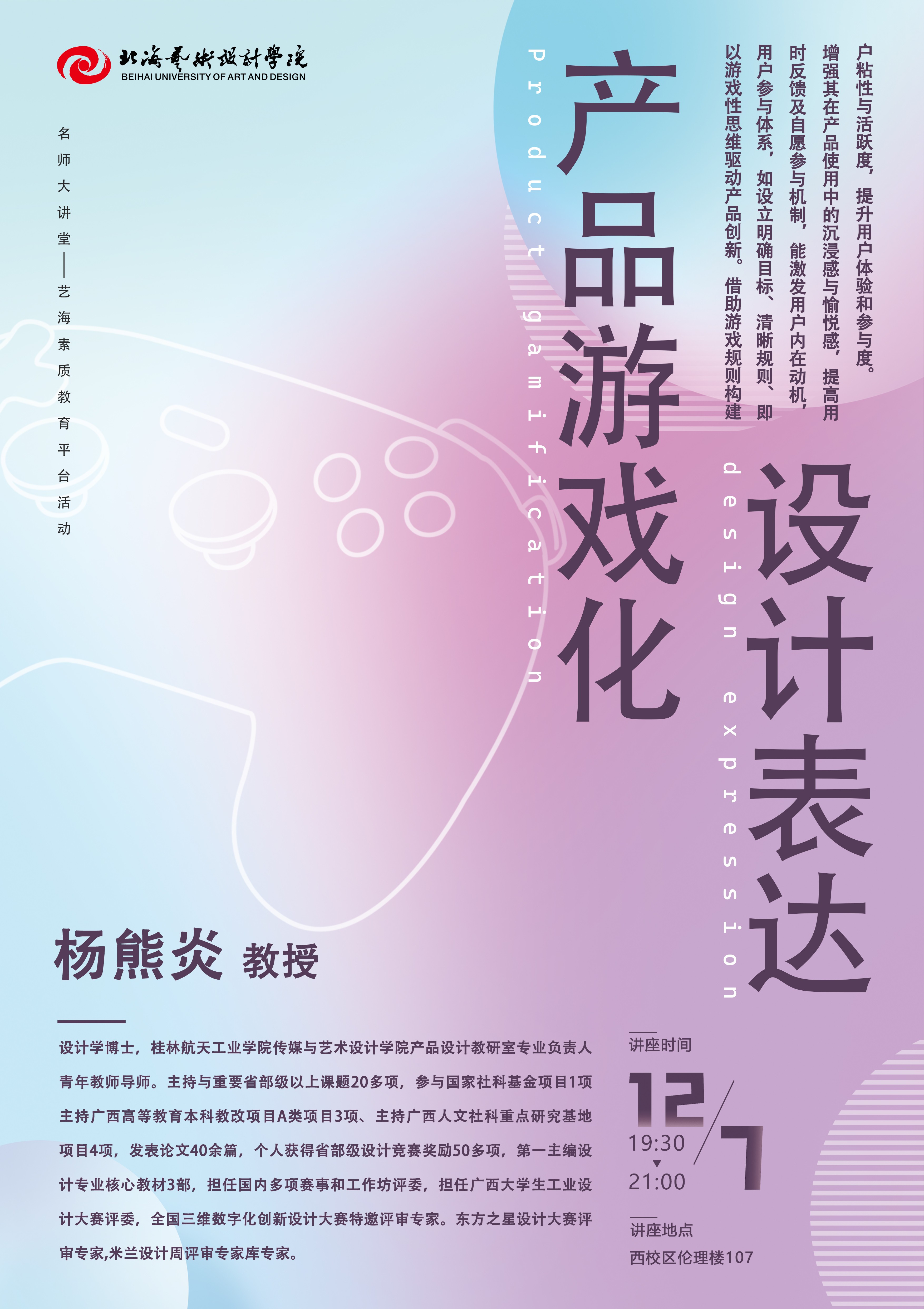 讲座预告︱杨熊炎《产品游戏化设计表达》
