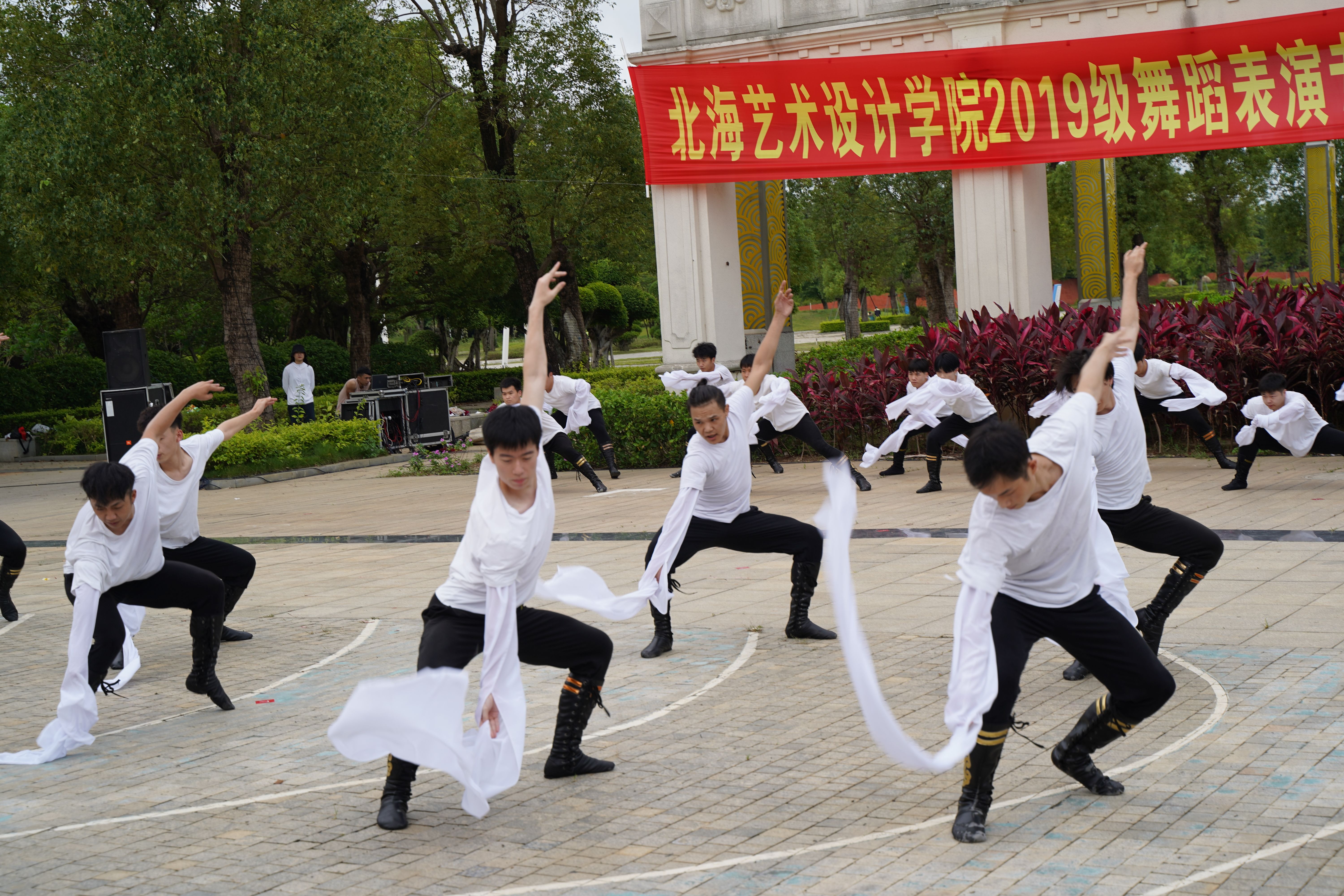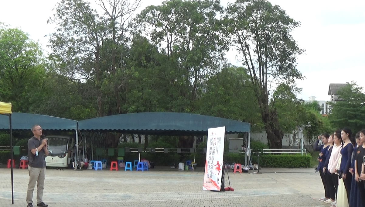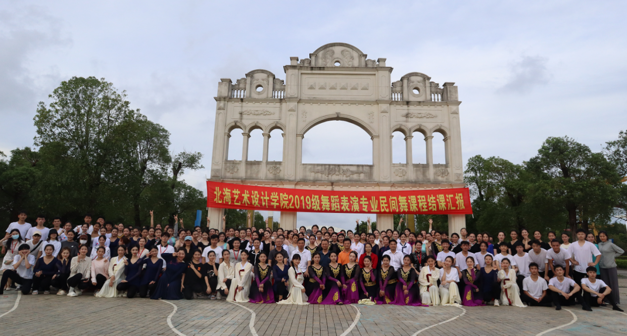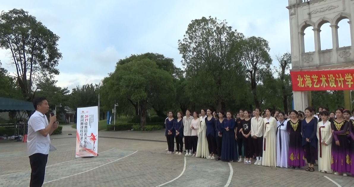 2022年6月9日,北海艺术设计学院人文教育学院2019级舞蹈全体表演专业《民族民间舞》课程结业汇报演出在园博园校区举行。北海艺术设计学院副校长王斌、陶立阳,人文教育学院院院长熊秀峰、副院长李谦,舞蹈表演专业杨建中、殷强教授等观看了演出。