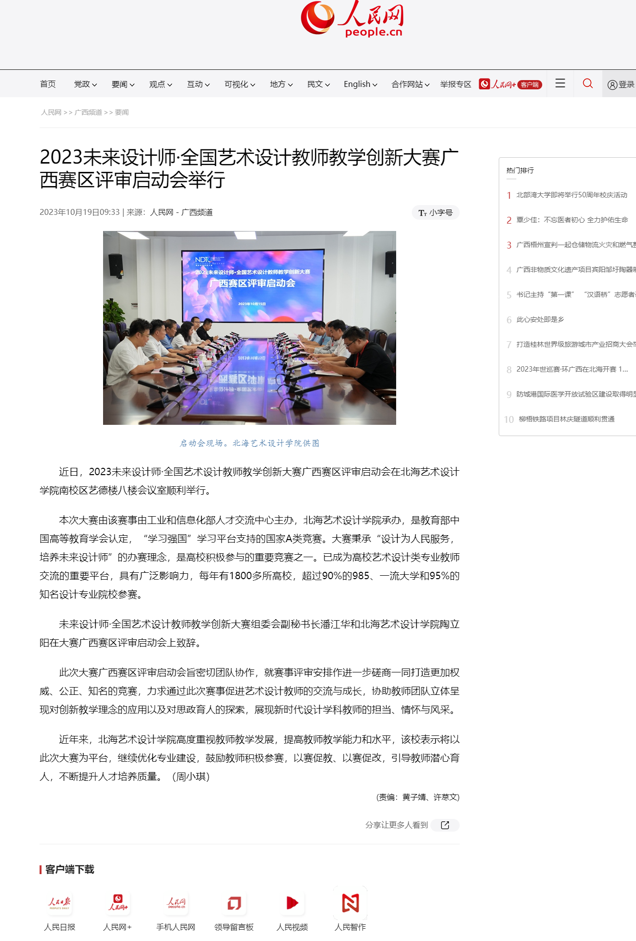 人民网:2023未来设计师·全国艺术设计教师教学创新大赛广西赛区评审启动会举行