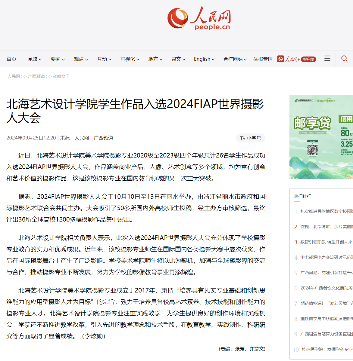 人民网:北海艺术设计学院学生作品入选2024FIAP世界摄影人大会