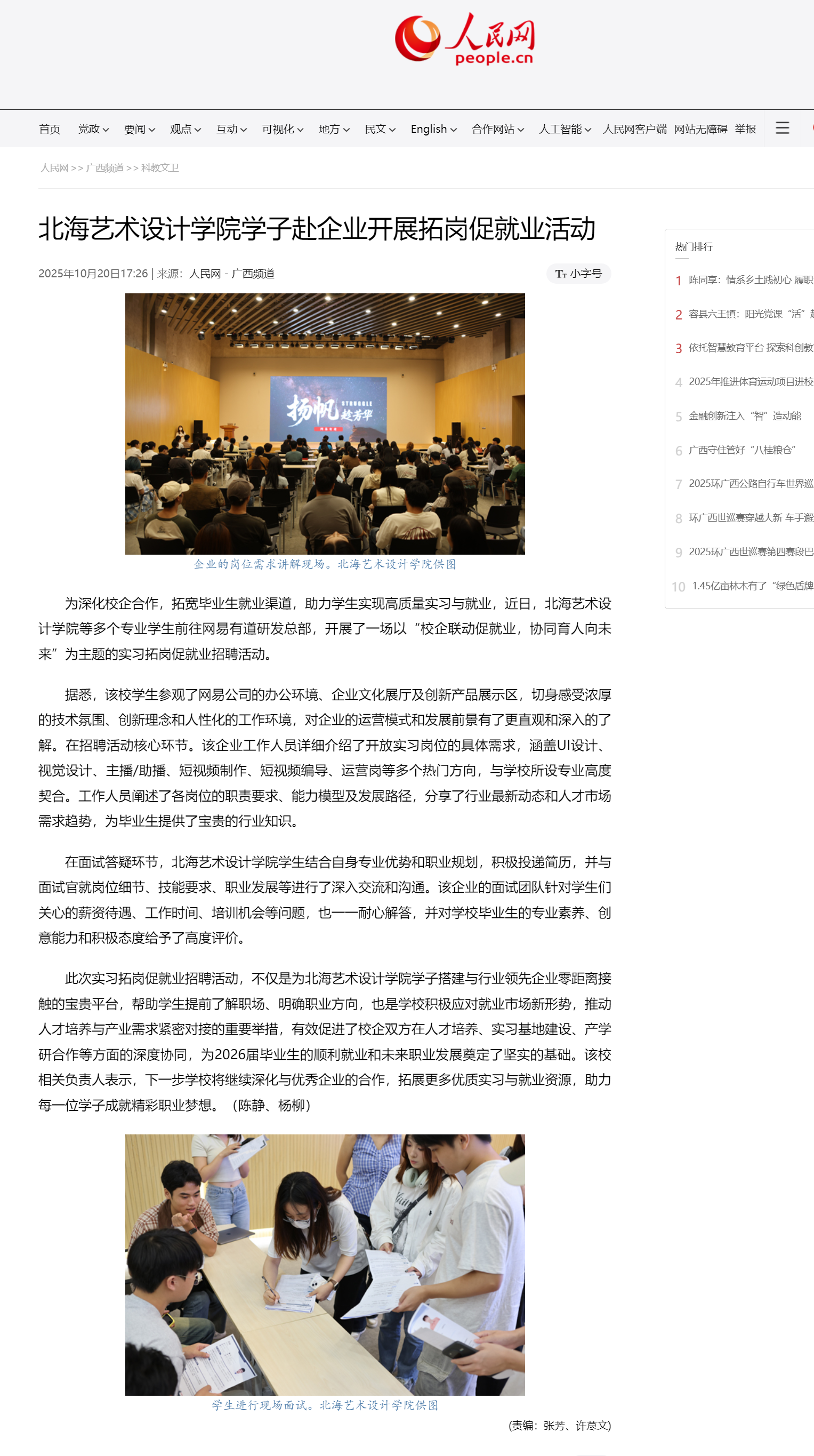 人民网:北海艺术设计学院学子赴企业开展拓岗促就业活动