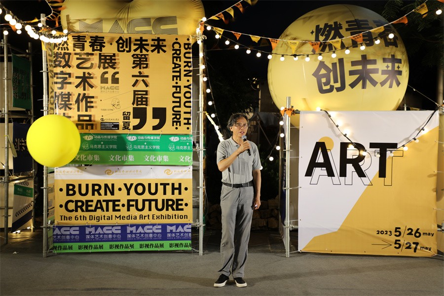 学校董事长、副校长郑念贻为此次作品展做总结发言。他表示,此次展览活动作品不仅是学生个人成长的见证,也是学校数字媒体艺术专业建设发展的成果。他希望广大学子都能继续保持对数字媒体艺术的热爱和追求,在今后的学习和创作中不断进步和突破,做出更优秀更精彩更有影响力的作品。