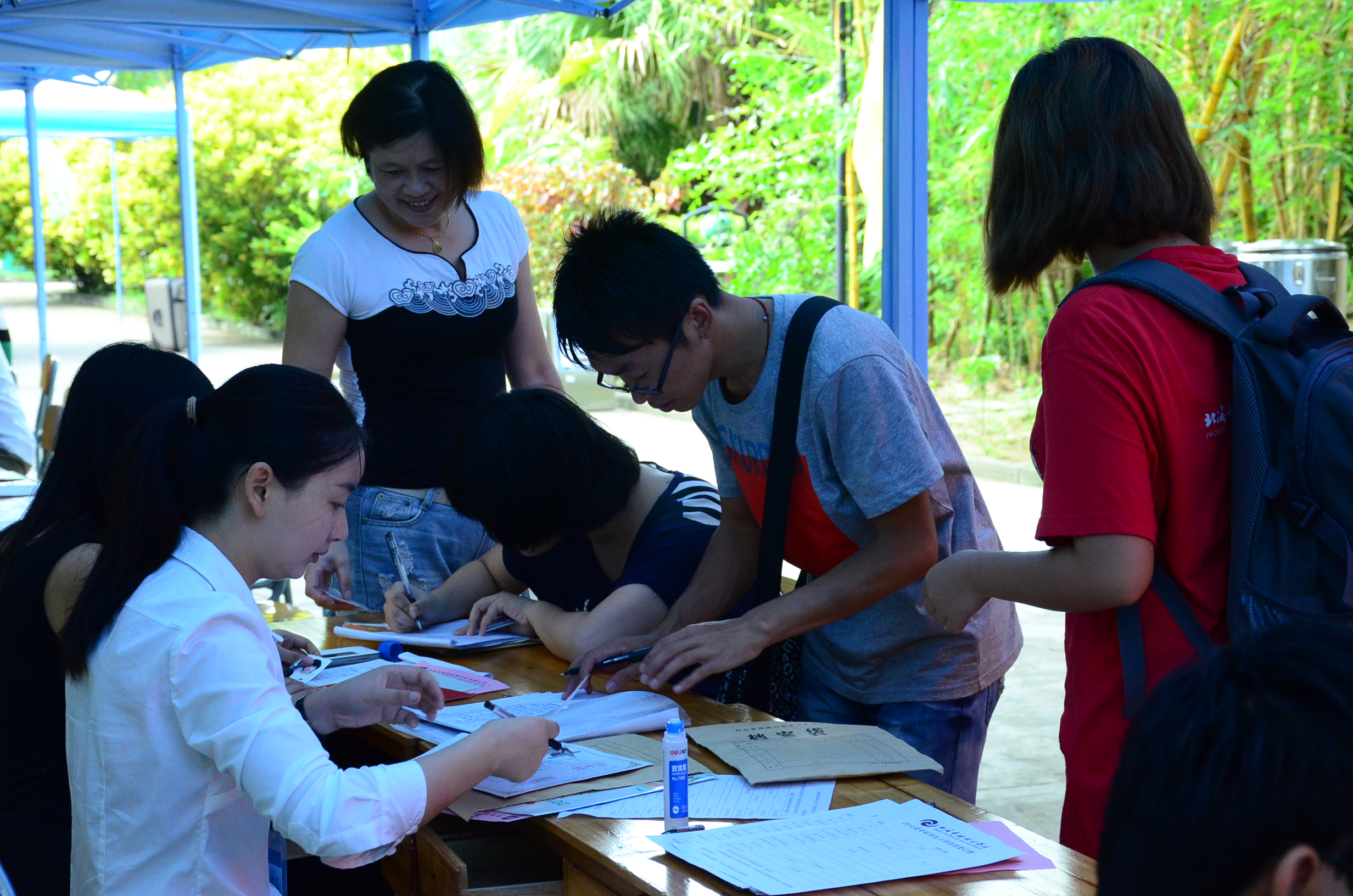 迎新工作进行得如火如荼,新生咨询处、报到处、缴费处、军训服装领取处、家长休息区,到处都是忙碌的身影。“学妹,你好,你是自己来的吗?不用担心的,学姐可以全程接待你的。” 校园内的志愿者们用热情欢迎新生,用微笑温暖新生,让他们离家求学的心并不孤单。“学长,学姐,你们的热情服务让我感觉很亲切。明年,我们也要像你们一样,为我院迎来更多的学弟,学妹。”一个来自环艺专业的大一新生满脸笑容地说。