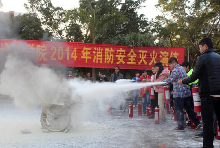 为了提高学院的消防安全管理水平,增强师生员工在紧急情况下的应变能力和自我防护能力。我院于2014年12月19日16点30分举行了2014年度消防灭火演练。学院常务副院长张建虹、副院长张跃、林秀琪、彭仁应邀出席,各班级义务消防员、各班主任、辅导员、学院各部门代表参加了演练活动。
