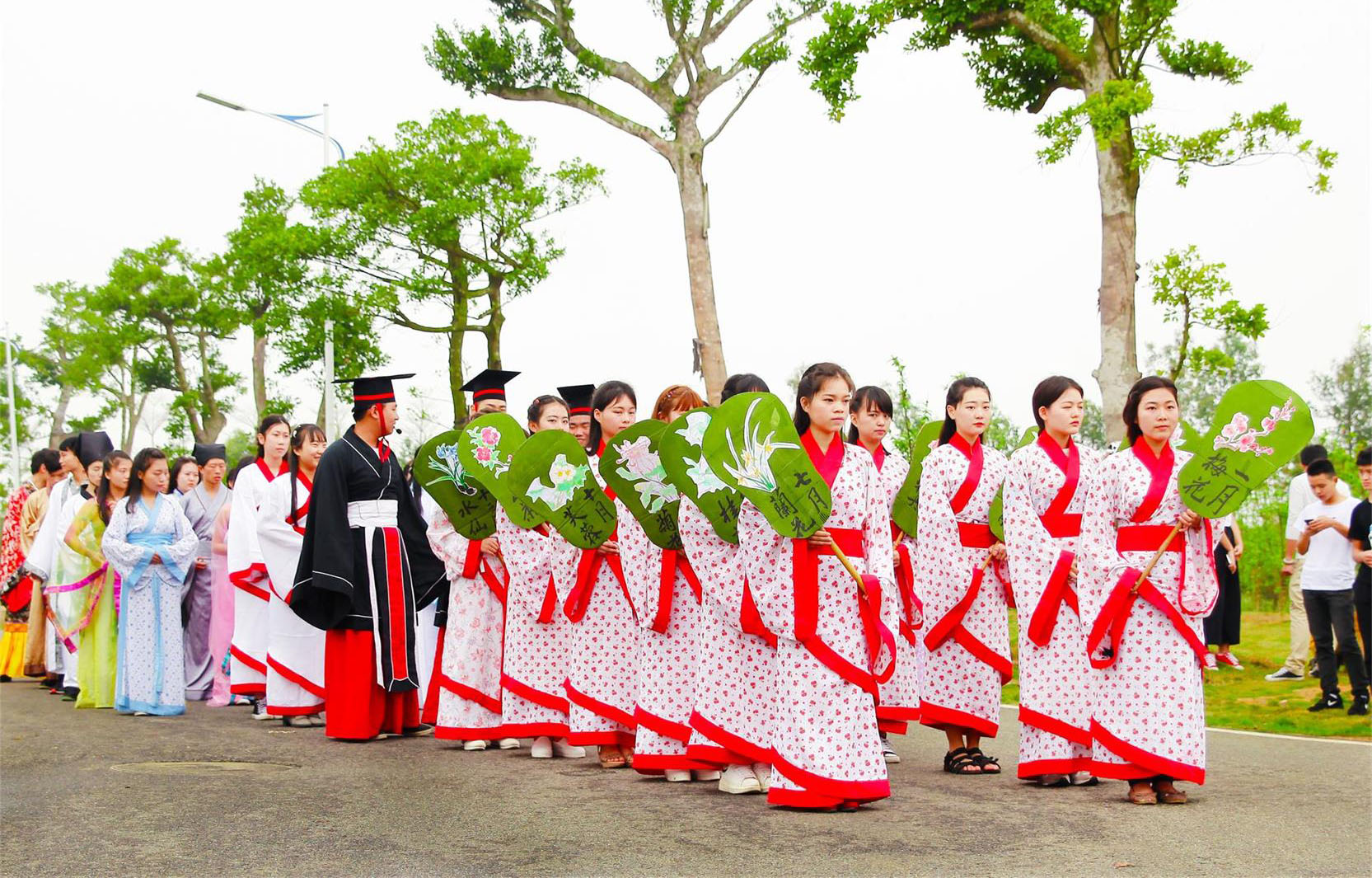 为弘扬中国传统文化,丰富学院学生课余生活,由北海艺术设计学院主办,北海艺术设计学院教育学院承办的“花朝节”祭拜活动于2016年3月20日上午9:30在园博园滨海之花广场、百色园举行。活动当天,在教育学院黄艳芳院长、蒙剑英班主任、康怡老师和熊秀峰老师的带领下,我院2015级艺术教育专业1、2班的学生身着汉服,向盛开的花树敬香酹酒,宣读祭文,表演颂花歌舞,并开展赏红、食花糕、击鼓传花等活动为百花庆生、为春天祈福。