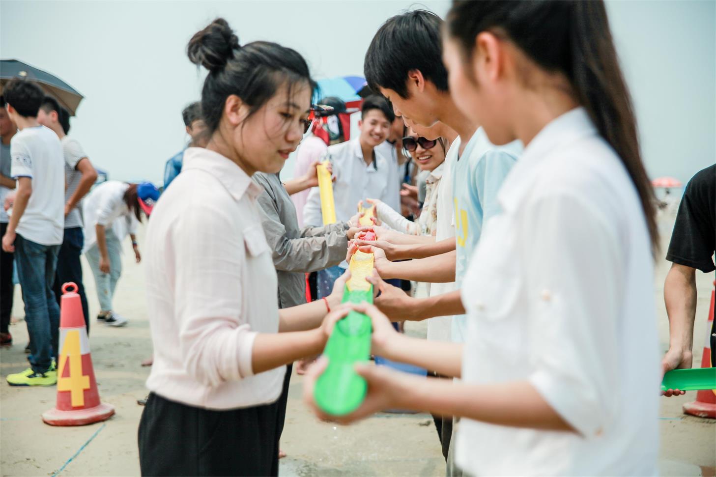 年轻的我们自信飞扬,青春的气息如同出生的朝阳,蓬勃的力量如同海滩公园头顶上阳光的挥洒。此时此刻,每一个赛场都是选手精彩的舞台,声声加油呐喊更是对选手们最高的肯定!今年新增的“水到渠成”比赛项目,同学们在比赛中争分夺秒,配合默契。