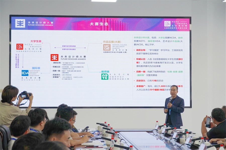 未来设计师·全国艺术设计教师教学创新大赛(NDTC)由工信部人才交流中心主办,教育部中国高等教育学会认定,入选教育部中国高等教育学会教师教学竞赛排行榜,多家教育厅发文立项,是首个聚焦艺术设计学科教学创新的竞赛。大赛已连续举办12届,是高校教师积极参与的重要竞赛之一,每年吸引1800多所高校参与,包括95%的985大学、知名美院以及来自50个国家和地区的参赛者。大赛以推动艺术设计教学创新·培育艺术设计一流师资为主旨,采用“校赛-省赛-国赛”三级赛制,致力打造艺术设计学科权威、公正、领先的教师赛事,得到“学习强国”学习平台、半月谈等权威媒体的报道,对优秀作品进行展示。今年的未来设计师教师赛已经全面启动,全国设立了30个省级赛区。此次大赛广西赛区的活动主题定为“创新引领,设计未来——共启广西艺术设计教育新征程”。