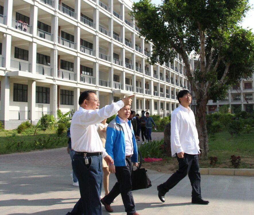 院领导陪同赵益真处长(中)参观学院新校区校园环境
