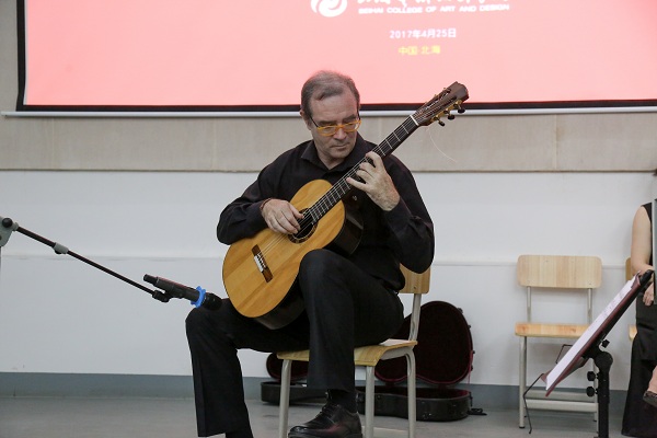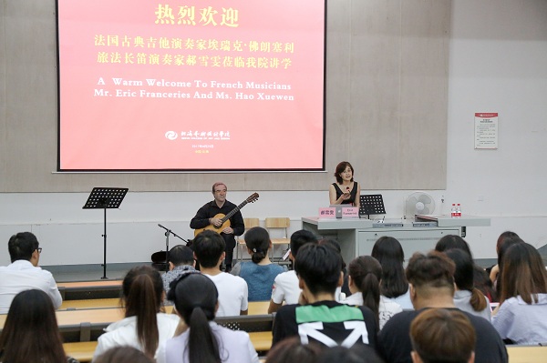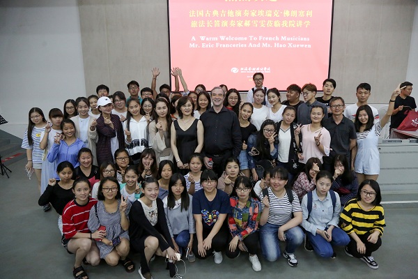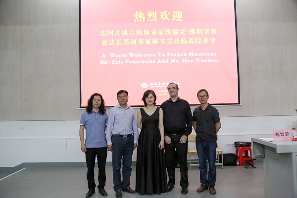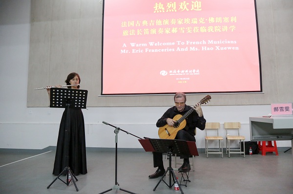 2017年4月25日晚7:30,法国古典吉他演奏家埃瑞克·佛朗塞利与旅法长笛演奏家郝雪雯莅临我院讲学,为全院师生带来了一场精彩的法国古典音乐暨讲座。