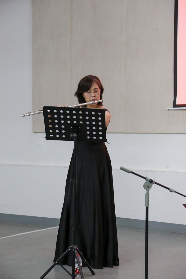 紧接着是郝雪雯女士为大家演奏莫扎特的长笛协奏曲,旋律纯净、欢乐、优美、宁静、悠扬,沉稳而不沉闷,华丽而不张扬。舒缓的笛声让在场的师生心情舒畅,让人有种想随着笛声翩翩起舞的冲动。