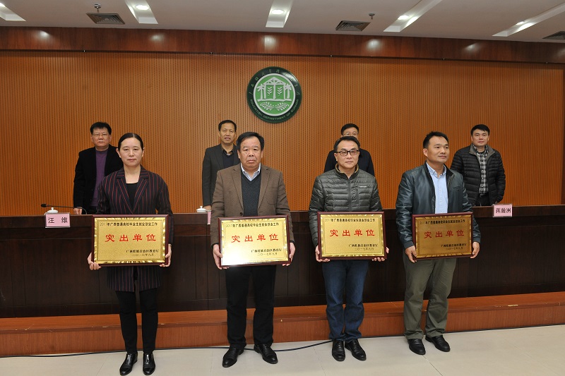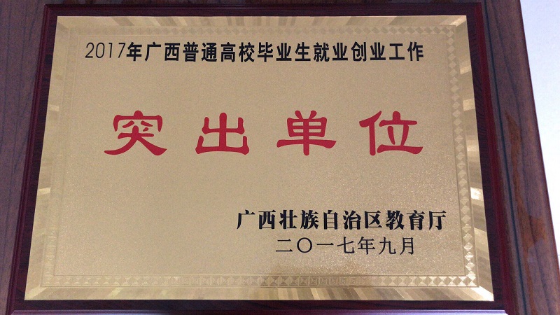 会议对2017届广西普通高校毕业生就业创业工作突出单位进行表彰,我校获评“2017年广西普通高校毕业生就业创业工作突出单位”,并作为高校代表上台领奖。