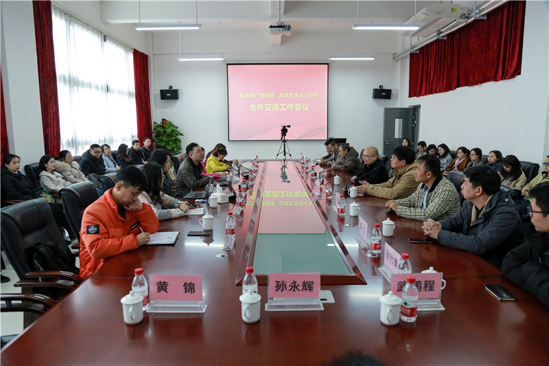 首先我校党委书记李高南对新华网文贻炜一行的到来表示欢迎与感谢,感谢新华网广西频道在校企合作、人才培养方面给予学院的大力支持,并介绍了出席本次交流会的校级领导。我校执行董事郑超介绍了我校的基本情况,希望双方能够发挥优势,借助新华网的互联网平台推动北艺的转型发展和人才培养。