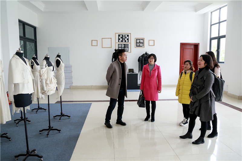 在我校洽谈期间,文贻炜一行先后考察了设计学院工作室、动画学院工作室、服装学院展厅,我校副校长邱杰、动画学院常务副院长陶立阳等领导陪同。
