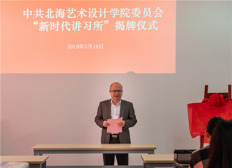 党委书记李高南在揭牌仪式上作讲话。他强调创建“新时代讲习所”,是学校党委贯彻落实自治区党委、自治区党委教育工委决策部署的举措。“新时代讲习所”是学习宣传研究习近平新时代中国特色社会主义思想和党的十九大精神的重要阵地,是加强基层党建、贯彻党的教育方针的重要渠道,是培育和弘扬社会主义核心价值观、正确引领社会风尚的重要载体,是扎根中国大地办教育、用新时代中国特色社会主义思想铸魂育人、落实立德树人任务的重要平台。