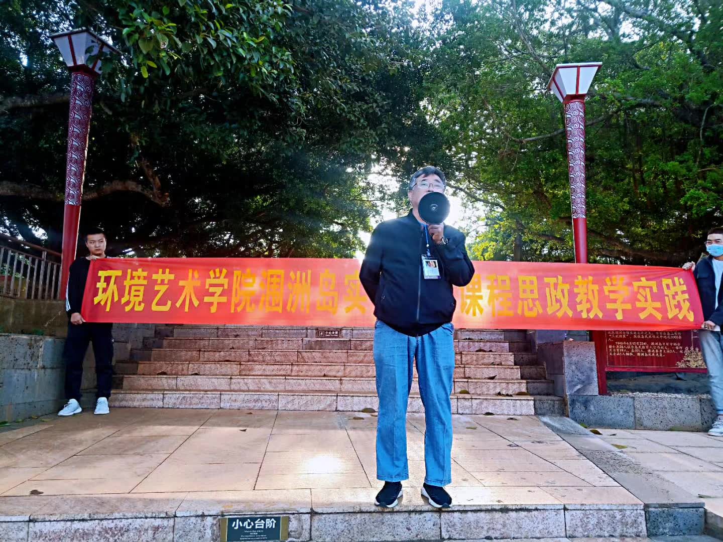 10月20日,思政部主任姜献生教授跟随第一批学生安全抵达涠洲岛,在学生写生过程中途经涠洲岛红色广场,向学生讲述了涠洲岛的革命斗争史,教育学生感恩先烈、珍惜当下,同时号召学生爱护岛上环境、友善待人,开展了生动的思政红色主题教育。