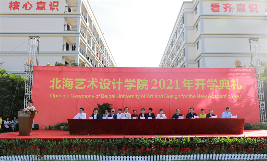 金秋十月,缘聚北艺。10月12日上午,北海艺术设计学院在西校区田径场举行2021年开学典礼。北海市委教育工委专职副书记黄毅,北海市高等教育管理服务办公室主任包建明,清华大学学术委员会副主任、教授李当岐,学校领导卢新华、贺争平、彭仁、韦静月、陶立阳、黄侃明、郑念贻、刘朝雄及全体一万多名师生一同参加了典礼。典礼由校党委书记张阳主持。
