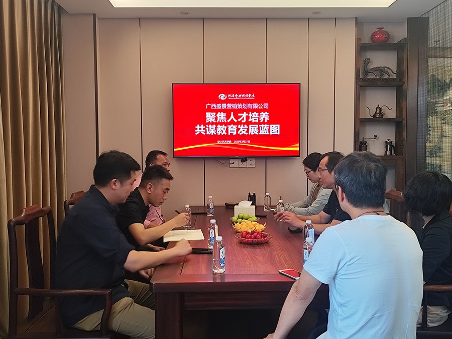 接下来在广西盛景营销策划有限公司,双方对企业的招聘规模、信息渠道和专业对口契合度方面进行了详细交流,并希望在文创产品设计领域能有进一步的合作,还围绕人工智能在设计创作以及对行业发展的影响方面展开了深入讨论。
