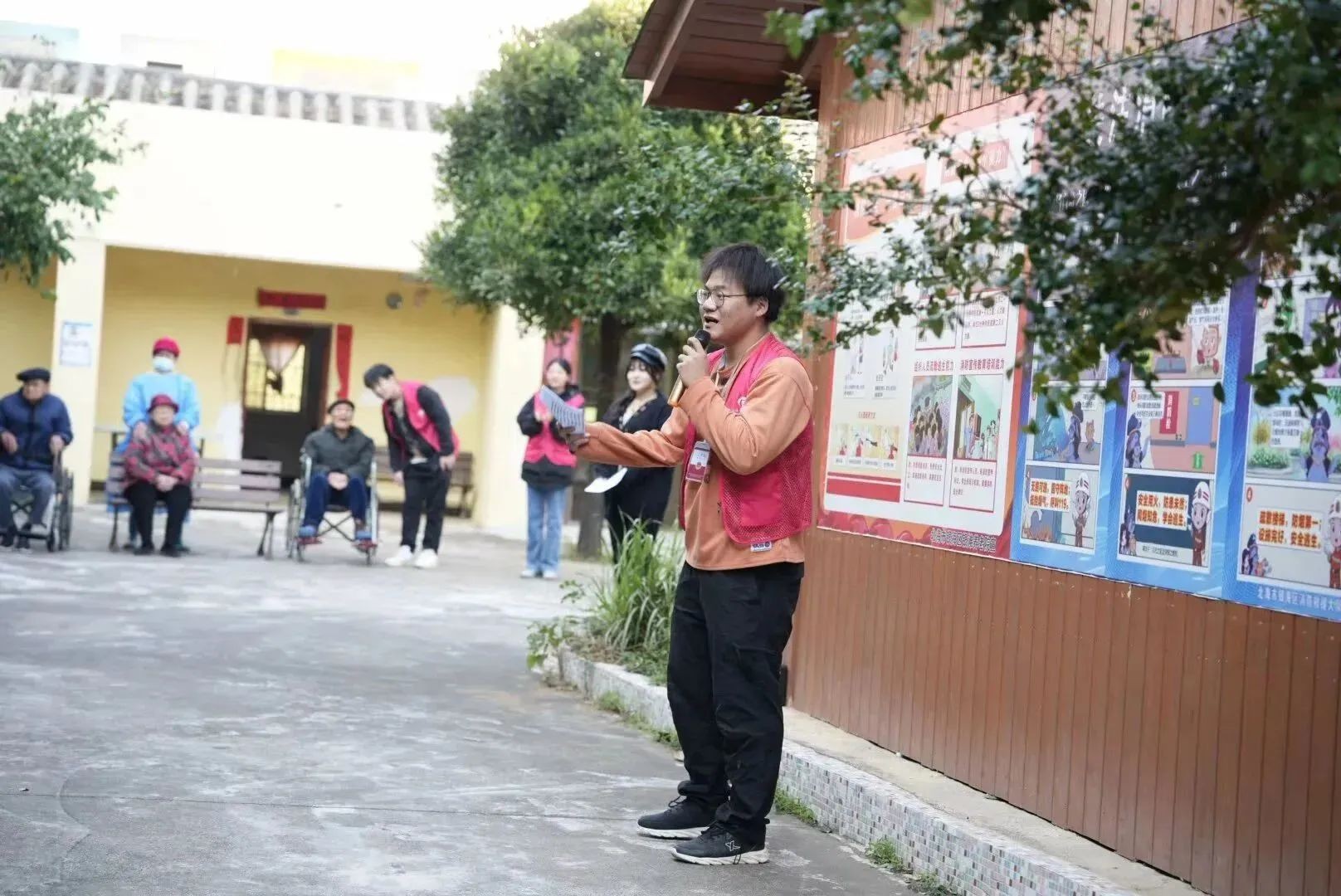 (志愿者与老人们一起唱歌)