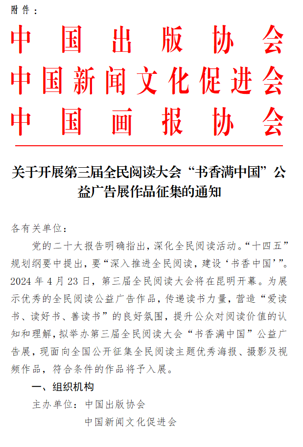附件:关于开展第三届全民阅读大会“书香满中国”公益广告展作品征集的通知