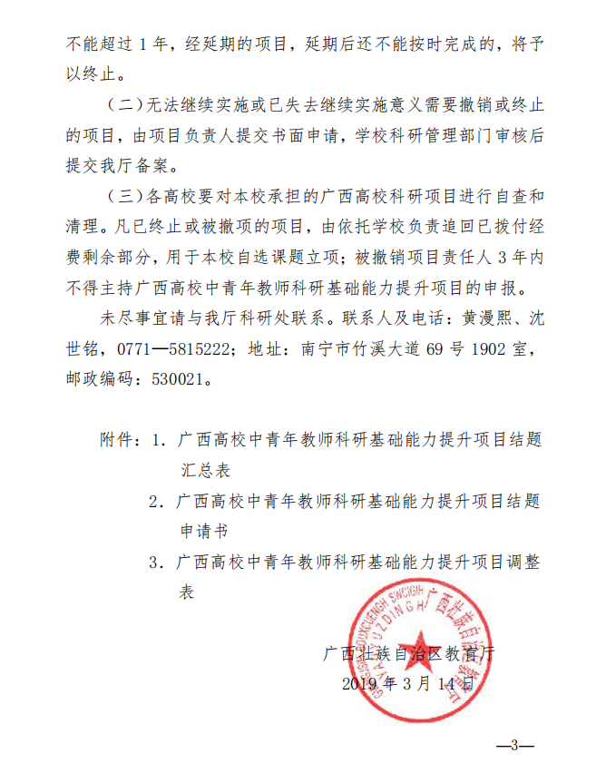 附件1:自治区关于教育厅关于做好2019年上半年广西高校中青年教师科研基础能力提升项目结题工作的通知
