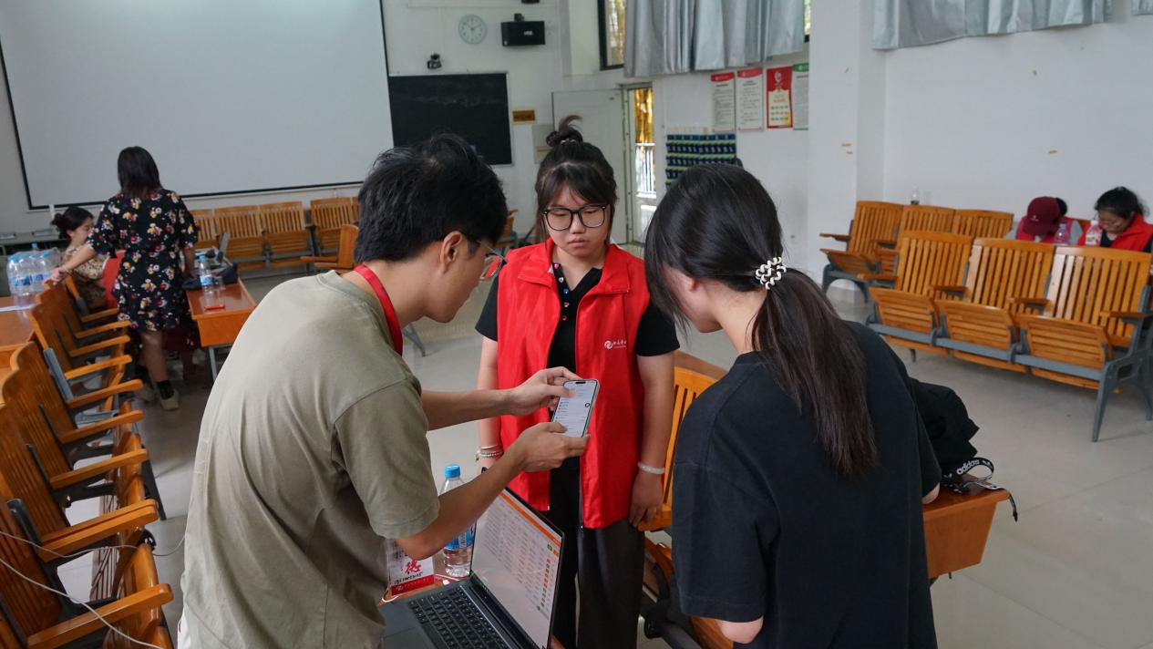 (志愿者带领新生完成报到流程)