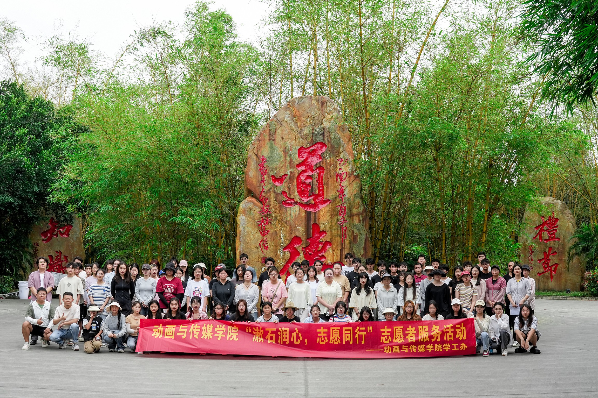 为深入贯彻落实习近平总书记的重要讲话精神,坚定树立绿水青山就是金山银山的绿色发展理念,进一步提升全校师生的环境保护意识,同时积极营造美丽宜人的校园环境,517日下午,动画与传媒学院在校内石刻文化林区域精心组织了一场以“漱石润心,志愿同行”为主题的志愿者服务活动。此次活动以清扫石刻文化林为主要内容,旨在通过实际行动,为荣获2023年国家奖学金、励志奖学金、自治区人民政府奖学金、筑梦奖学金以及国家助学金的杰出学子提供一个回馈社会、服务校园、美化环境的宝贵实践机会。