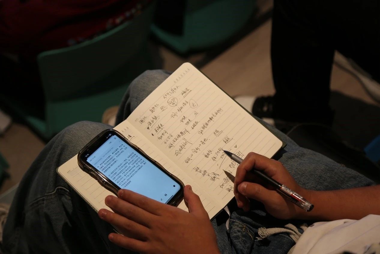 为确保讲座时间的充足,同学们下车后有序的进入讲堂并快速的落座,讲座开始之前张云老师非常亲切的做了自我介绍,据张云老师说讲座分为两部分,第一部分我们首先观看了三匠公司大概的宣传片,第二部分为我们分享了三匠团队,设计师眼中的世界,同学们借助张云老师的视角观察世界。你想了解什么?你想去践行什么?你想成为怎样的人?这是张云老师在课堂开始之初提出的三个问题,同学们带着问题走进了课堂。寻找心中的那一束光,用照片记录生活,用设计诠释心灵。
