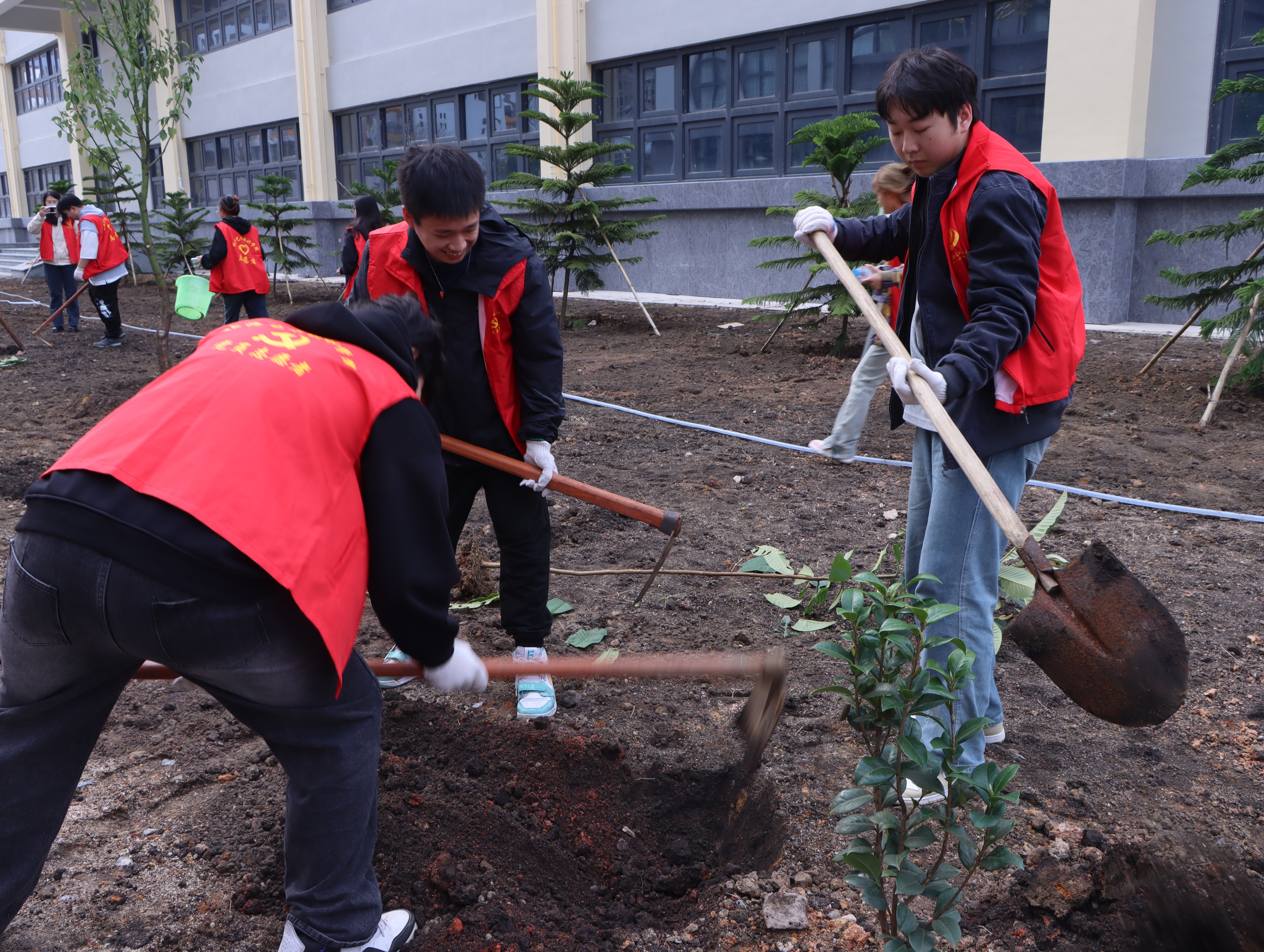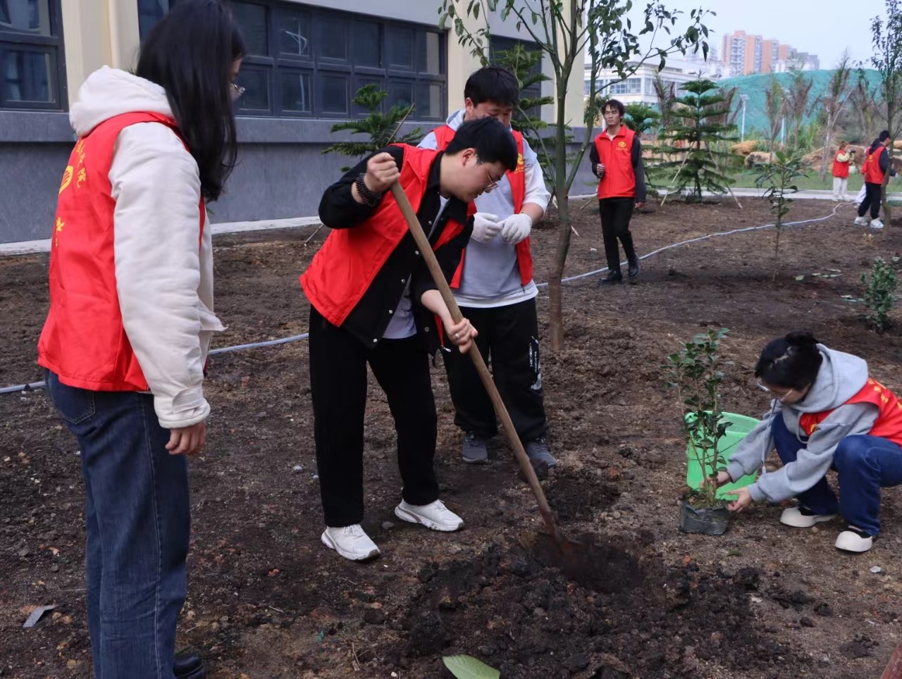 为深入贯彻习近平总书记重要讲话精神,牢固树立绿水青山就是金山银山的理念,增强全校师生的环境保护意识,同时美化校园环境,3月12日下午,我校团委在南区开展“志愿我先行,共栽青年林”植树活动,活动共有50余名师生志愿者代表参加,用行动播种绿色,美化环境。