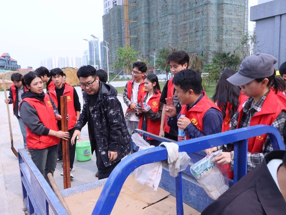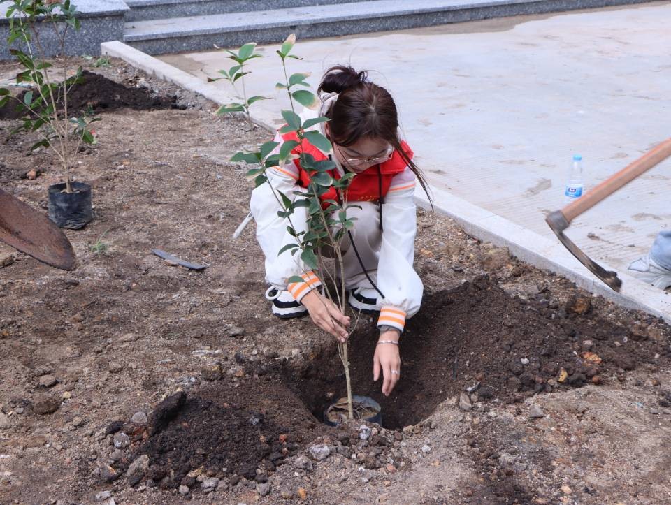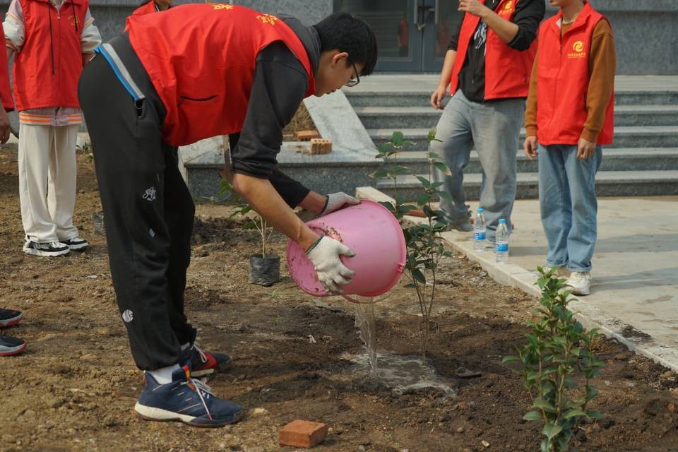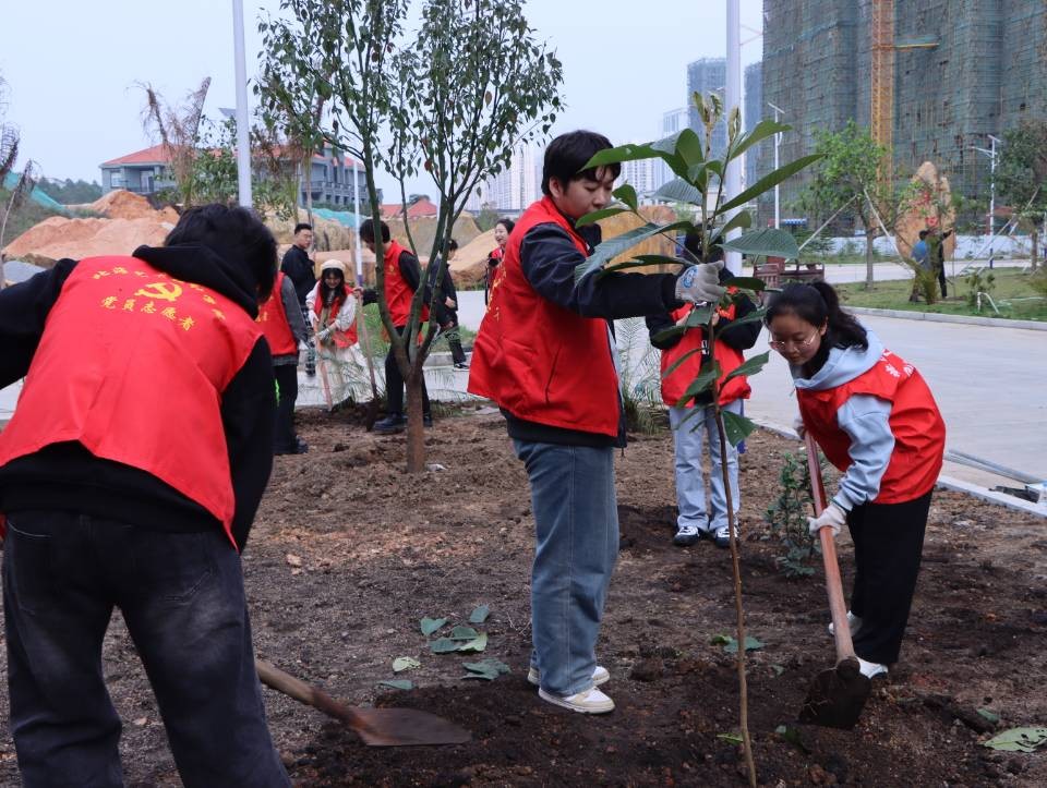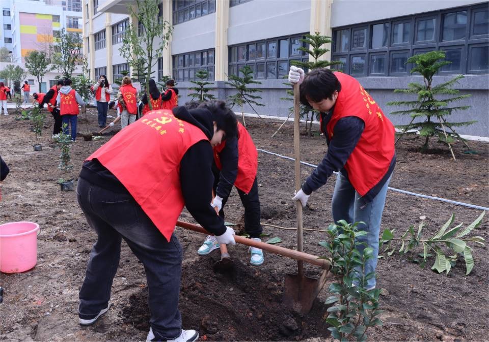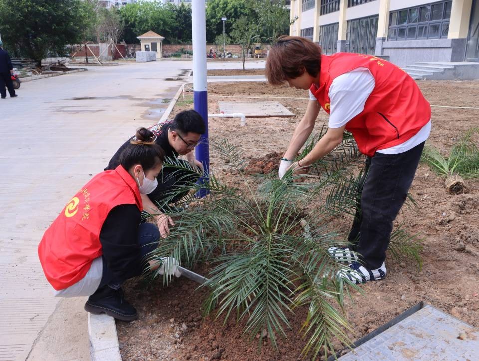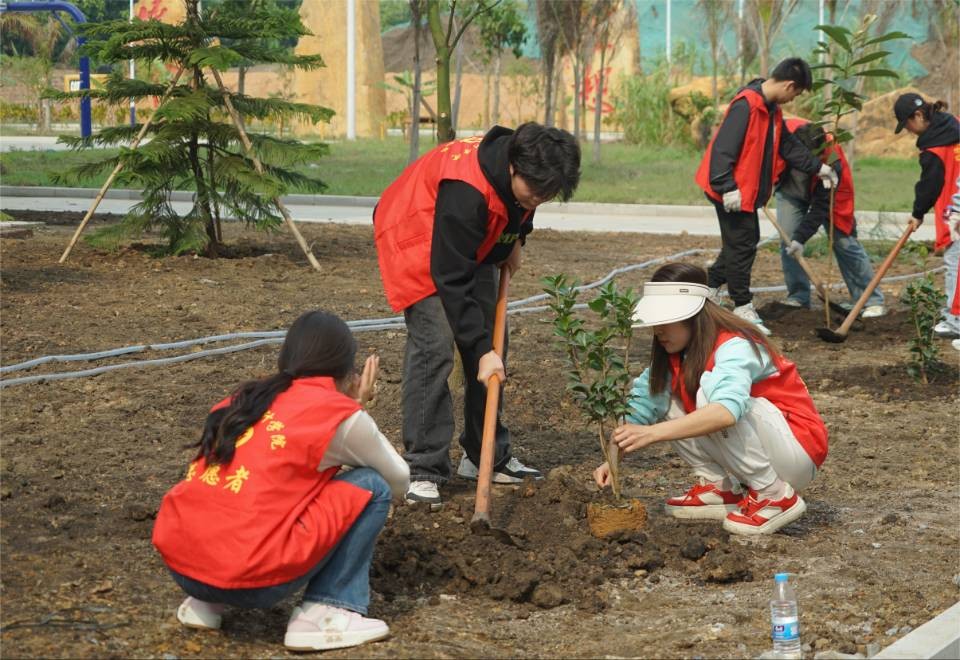 志愿者们植树的背影组成了校园中一道靓丽的风景线,一棵棵小树苗被栽下,南校区被一点点新绿缀满,同学们也在植树的过程中了解到许多有关树木的知识,认识到树木对于环境的重要 此次活动,我校师生以实际行动践行“绿水青山就是金山银山”的理念,为推进北海市创建文明城市工作贡献自己的一份力量。同时,充分发挥了团结协作、吃苦耐劳的精神,弘扬了志愿者“奉献、友爱、互助、进步”的精神。 溢一缕春光 种一丝新绿 换一片希望 在这阳春三月里 一起来种棵树吧(林修竹、黄韵露/摄)