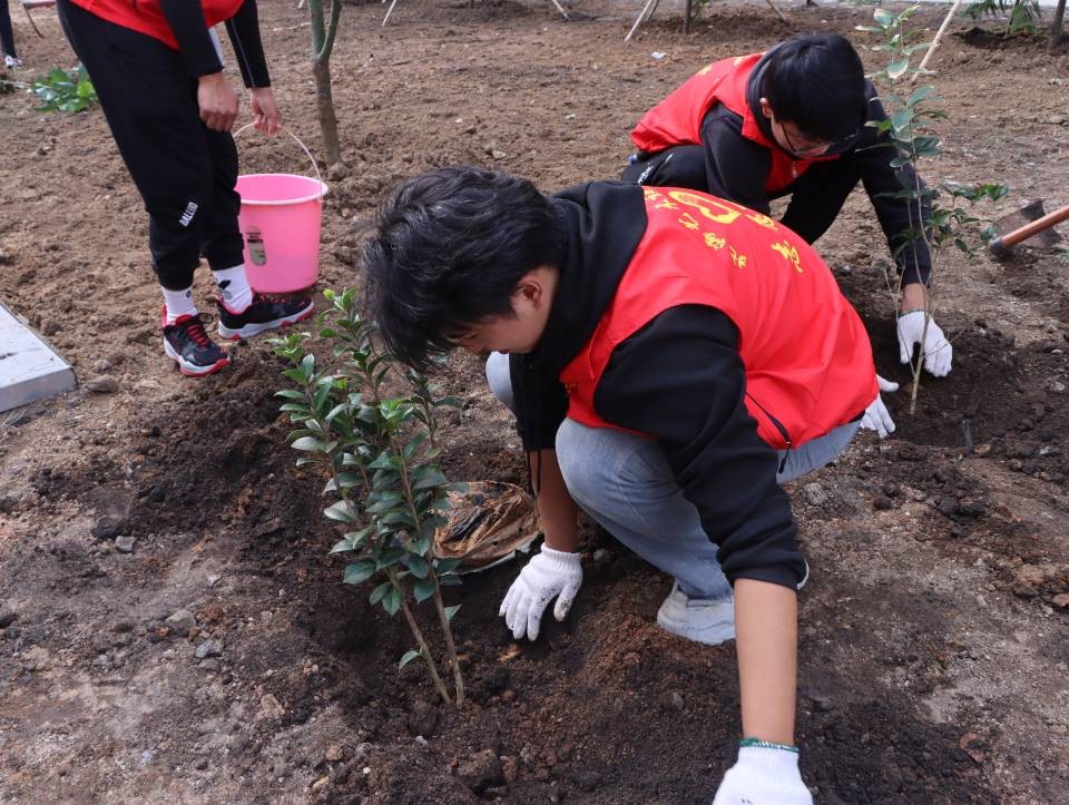 我校团委开展“志愿我先行,共栽青年林”植树活动