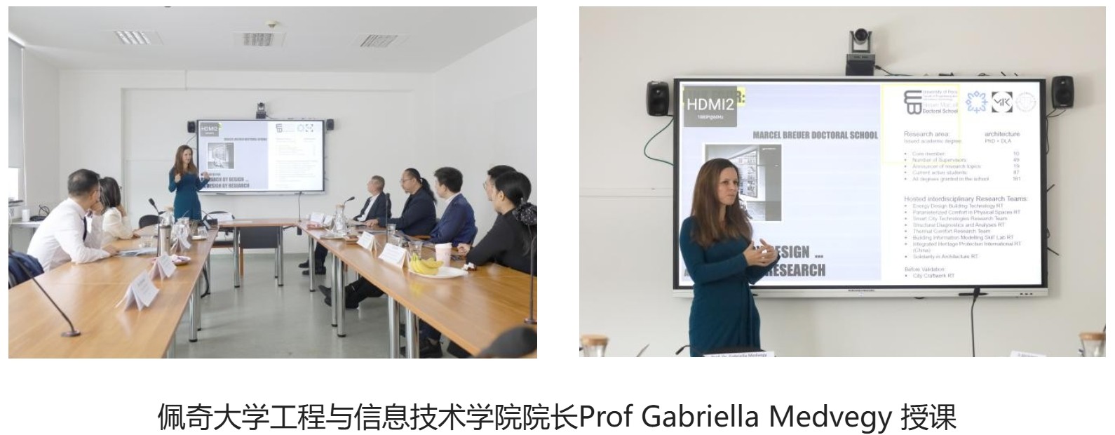 访学期间,代表团聚焦佩奇大学工程与信息技术学院优质教育资源,密集参与学术交流活动,为课程共建与教学革新筑牢基础。其中,外语教学中心负责人Julia Török教授主讲的“语言+文化项目”课程,系统分享数字资源应用与跨文化教学模式,为两校国际课程语言教学提供新思路;工程与信息技术学院院长Dr.MEDVEGY Gabriella与Dr.BACHMANN Balint联袂带来的“设计赋能科研”主题讲座,深度解析该校建筑与工程教育国际化实践经验,为双方教学融合指明方向;实践教学交流环节,Tímea Györök与Andrea Varga两位教师以“媒体研究英语”“室内设计英语”为案例,分享交际语言教学与项目式学习融合方法;Akos Hutter教授主持的“实验空间设计概念”工作坊,全方位展示创新教学模式,为2026年春季学期国际课程合作奠定实践基础。郑念贻董事长还接受佩奇当地主流媒体专访,分享两校合作愿景与教育交流成果,扩大了育人合作的国际影响力。