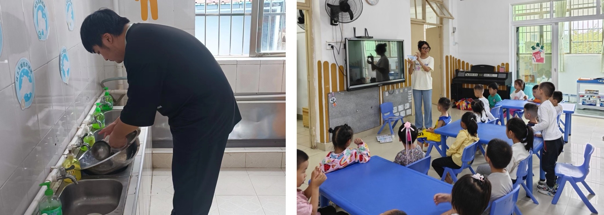 教育实践期间,同学们严格遵守学校和幼儿园的各项规章制度制度,按时到岗开展工作。2021级和2022级的见习生们积极主动参与幼儿园一日生活的各个环节,在教师的带领下组织早操、管理午睡及组织离园等活动,认真学习一线教师的活动组织方式和问题处理机制;能主动参与幼儿园班级环境创设,积极主动配合主班教师组织幼儿活动,配合保育老师做好清洁工作;能在教师的指导下尝试独立授课,组织幼儿进行游戏等等;在见习工作中充分发挥自己的专业能力,保质保量完成各项工作任务。2023级的同学们认真开展专业调查工作,了解和熟悉幼儿园的工作及运行机制 ,从实践中进一步端正专业意识,树立积极的求学心态,不断提升自身的专业素养。