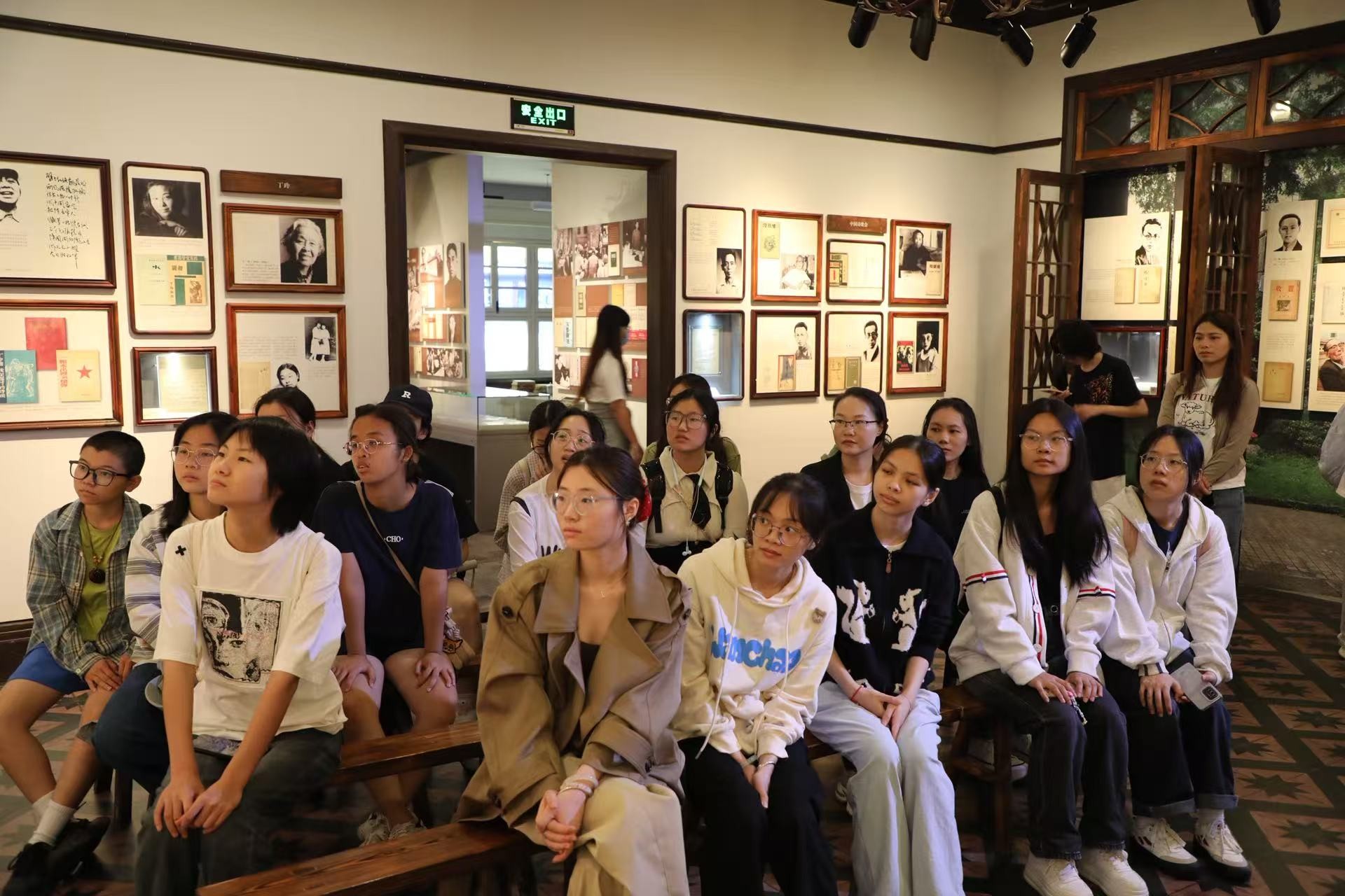 在中国现代文学馆,学生们在讲解员的引导下开启“触摸现代文学脉搏”的旅程,馆内泛黄的文献资料、带着细腻笔迹的作家手稿,以及还原出的鲁迅书桌煤油灯,让学生们直观贴近文学巨匠的创作日常。讲解员从《呐喊》诞生于新旧思潮的激荡年代、以犀利的文字唤醒民众的时代意义,讲到《四世同堂》借祁家四代人生活变迁展现中华民族危难时刻坚韧不屈的家国情怀,将文字背后的历史语境与文化内涵娓娓道来,让学生们在这场旅程中深刻触摸到民族文学的精神脉搏。学生们认真聆听、不时记录,还围绕“现代文学与社会变迁”展开热烈讨论,纷纷表示“以往在课本上读到的作品,如今有了实物与场景的支撑,理解变得更加深刻”。