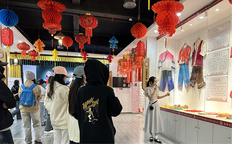 非物质文化遗产传承是此次采风的重点内容。在北海非物质文化遗产保护中心,学生们近距离接触公馆木鱼等非遗项目,观看传承人现场表演,详细了解非遗项目的历史渊源、表演形式和文化寓意。大家围绕非遗元素与舞蹈创作的融合展开热烈讨论,主动向传承人请教表演技巧,力求精准把握非遗文化的精髓。“非遗文化蕴含着深厚的民族智慧,作为舞蹈专业学生,我们有责任将这些宝贵的文化财富通过舞蹈艺术传播,让传统文化焕发青春活力。”2024级舞蹈表演专业学生姜雨凝同学说道。