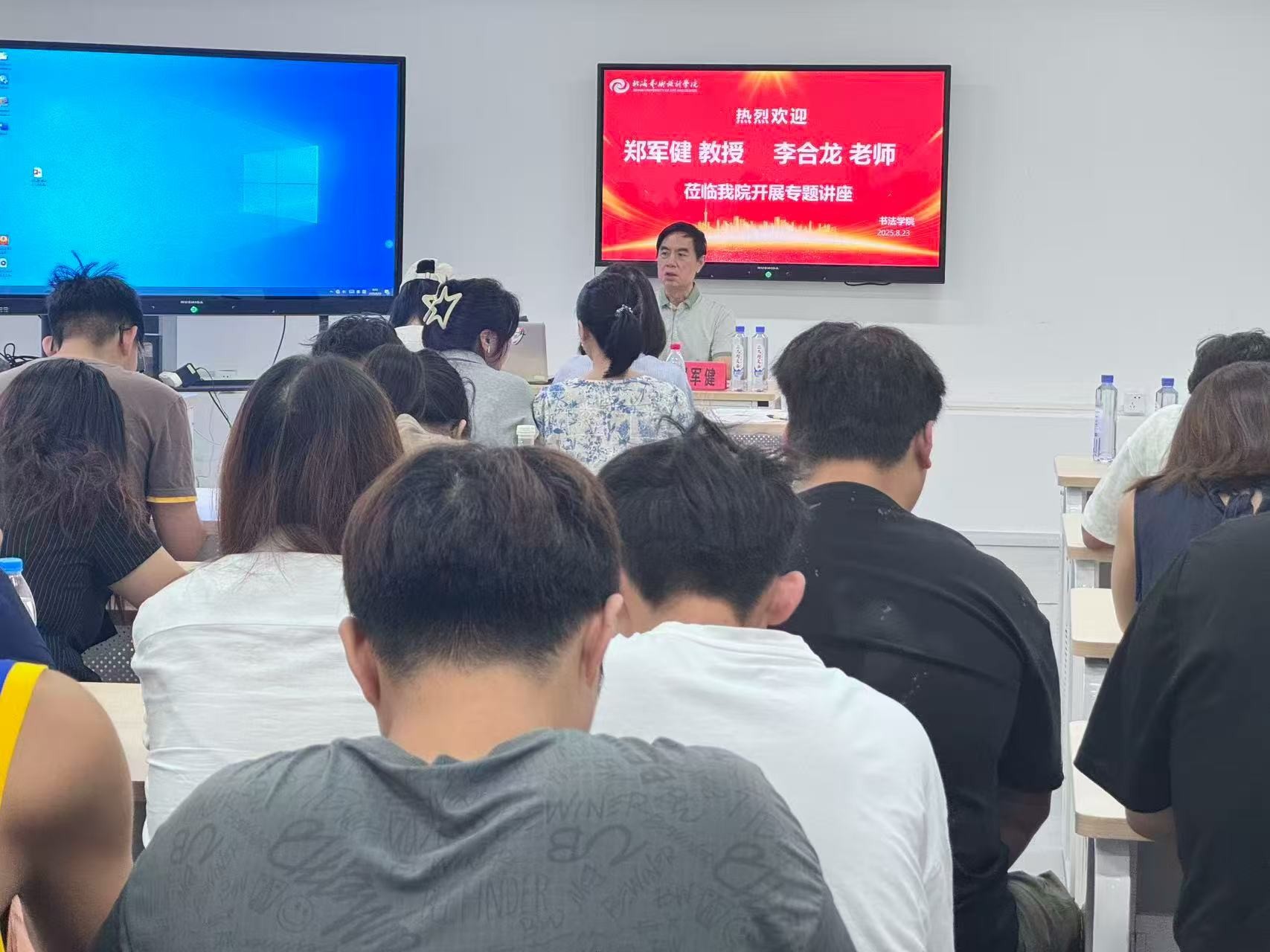 8月23日上午,原广西书法家协会主席、硕士生导师郑军健教授以传统文化与书法为主题开启首场讲座。郑教授结合自身数十年的书法创作与研究经验,深入浅出地阐释了传统文化对书法艺术的关系。紧接着由故宫博物院研究员李合龙老师带来以故宫文物分享与汉字书法系统的使用为主题的讲座,分享文物与书法的魅力。讲座使学生们深受启发,认识到中国书法的魅力与价值。