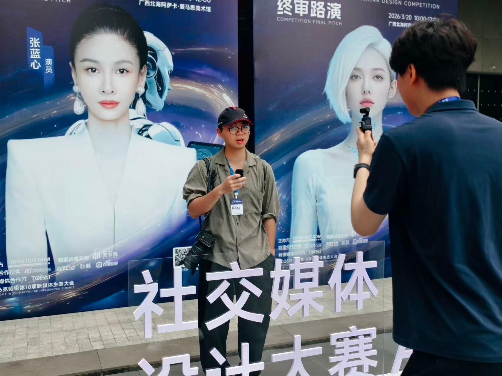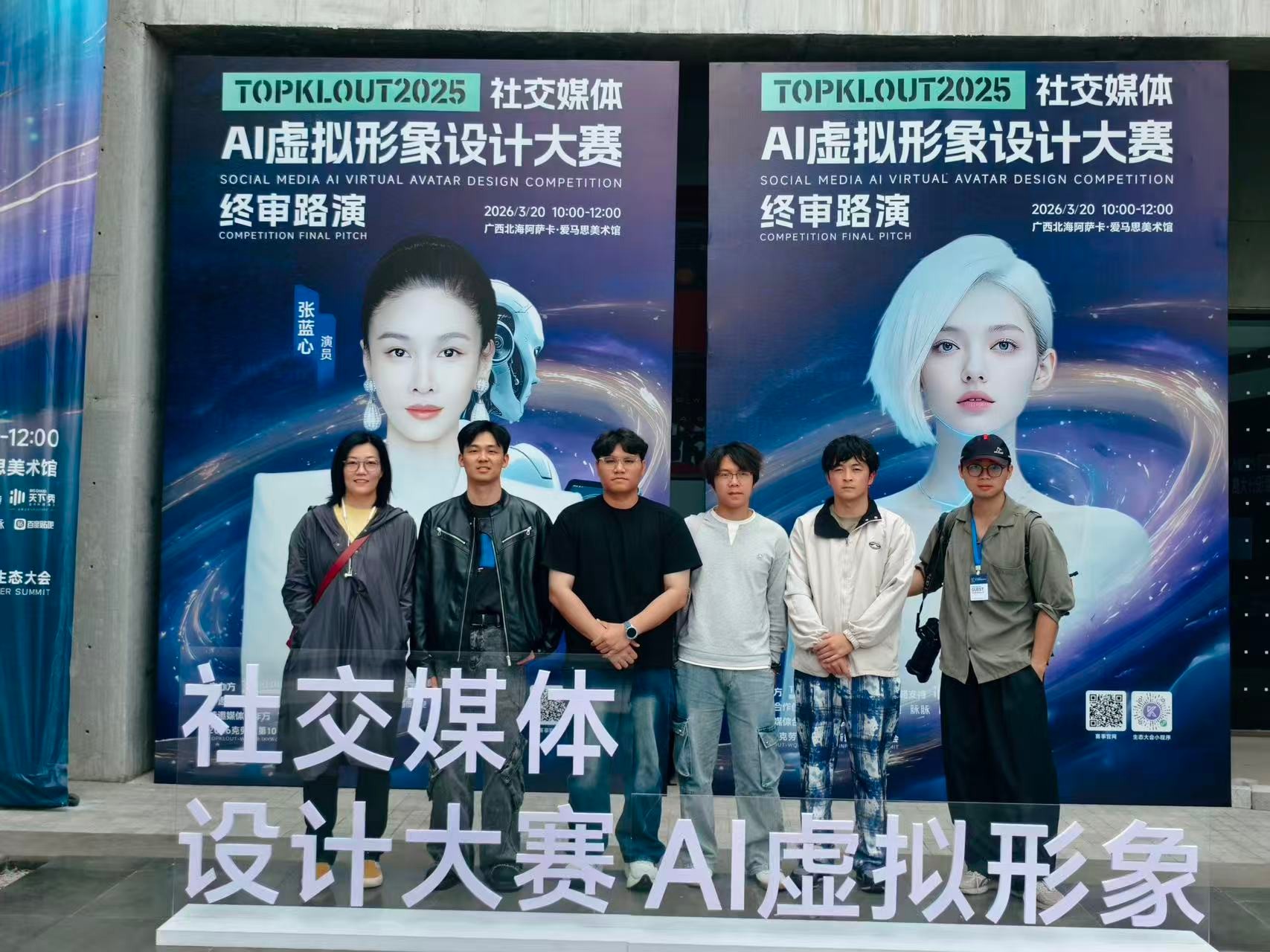 2026年3月20日,北海艺术设计学院副校长陶立阳、美术学院执行院长兼校长助理龚为、副院长殷声,以及摄影教研室部分教师、23/24/25级摄影专业学生代表一行人等受邀参加2026克劳锐第10届新媒体生态大会之社交媒体AI虚拟形象设计大赛终审路演活动。