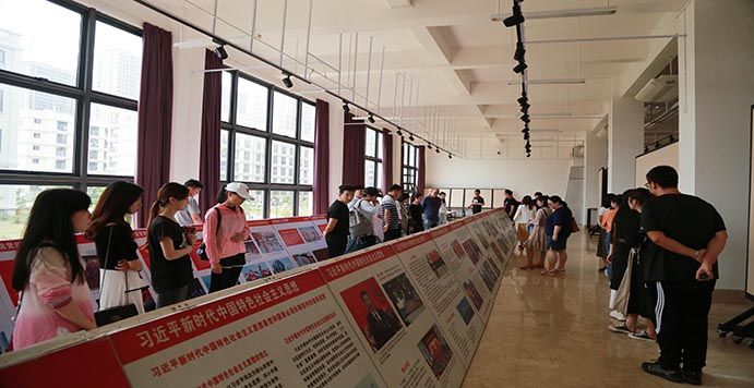 2019年3月22日中午11:40,在我院党总支的组织领导下,全院教师党员、学生党员、发展对象与入党积极分子一起来到我校西校区图书馆一楼观看学习了《画说习近平新时代中国特色社会主义思想》和《画说党的十九大精神》的展览。