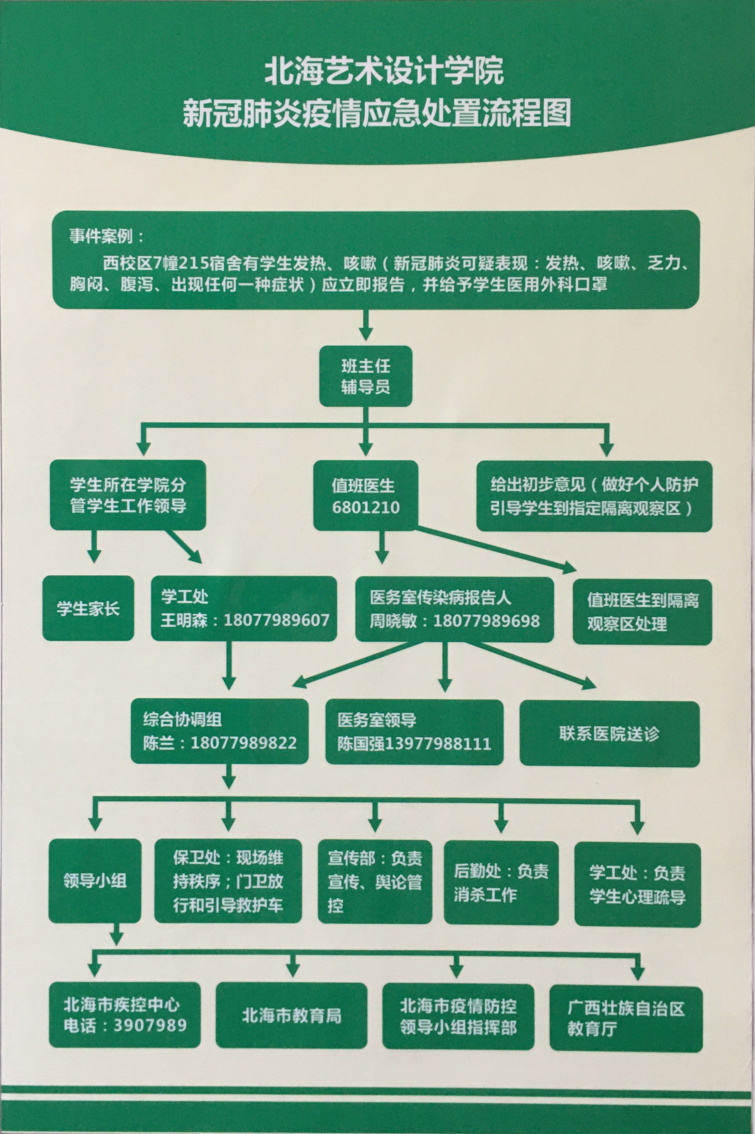 北海艺术设计学院新冠肺炎疫情应急处置流程图